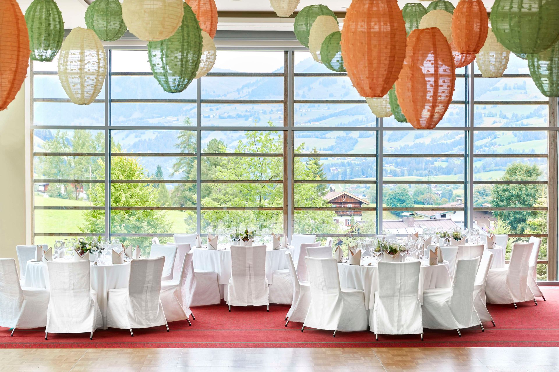 غرفتي اجتماعات إضافيتين - الذهبية والفضية - ويمكن ربطهما بسهولة بالغرفة البلاتينية وزيادة غرفة اجتماعاتك إلى مساحة إجمالية تبلغ 220 مترًا مربعًا (2,368.1 قدمًا مربعًا) أو 337 مترًا مربعًا (3,627.4 قدمًا مربعًا). هل تحتاج إلى مساحة أكبر أيضًا؟ دعنا نفتح أبواب الردهة وسنستطيع أن نوفر لك مساحة 490 مترًا مربعًا (5,274.3 قدمًا مربعة) للاجتماعات والفعاليات مع منظر بانورامي ساحر لجبال الألب!