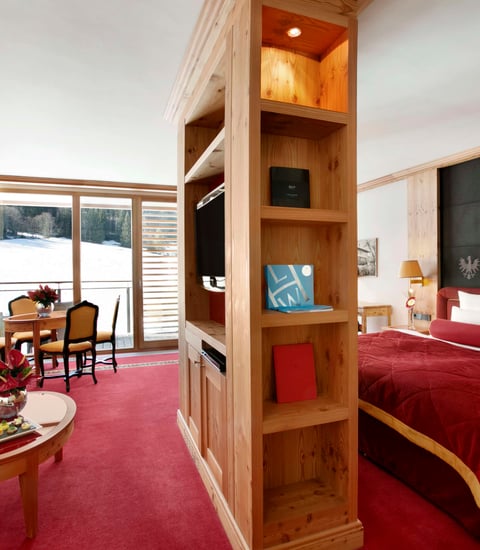 أبهج عينيك بمنظر الجبال الجميل من كل الغرف والأجنحة بمنتجعنا الكائن في قلب جبال الألب. يتميز كل جزء من الفندق بمزيج من العمارة الحديثة والذوق الذي تتسم به تيرول.