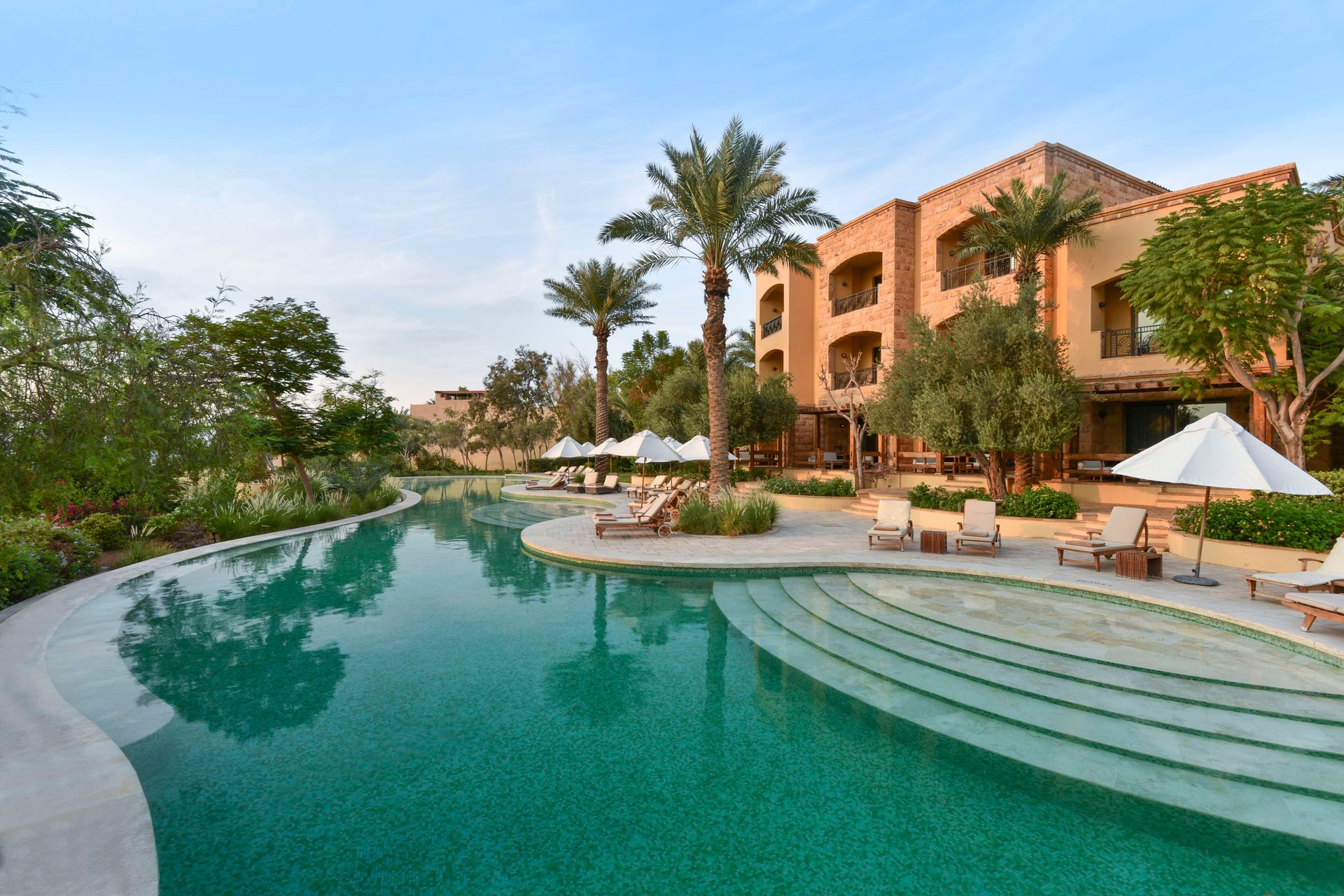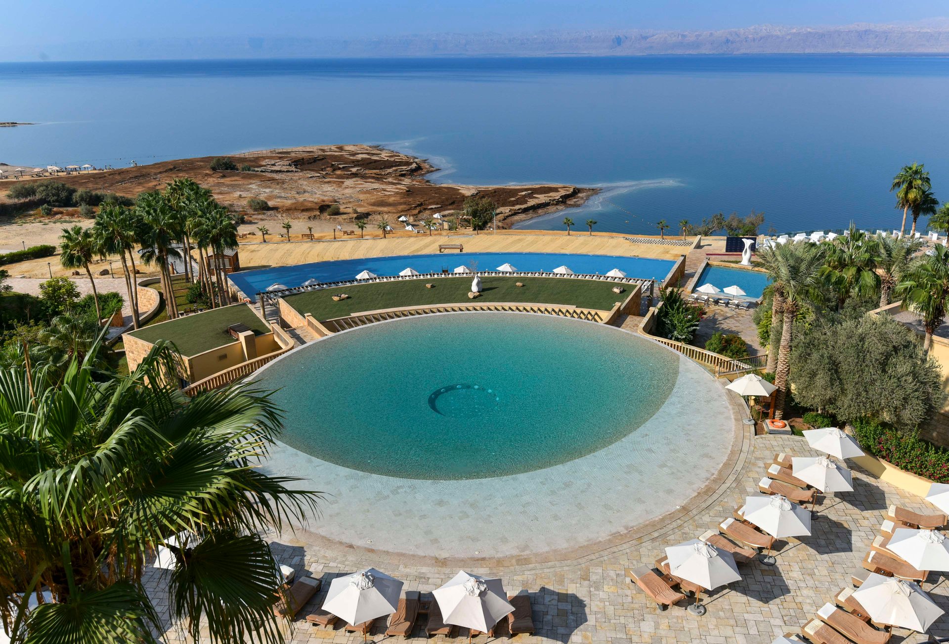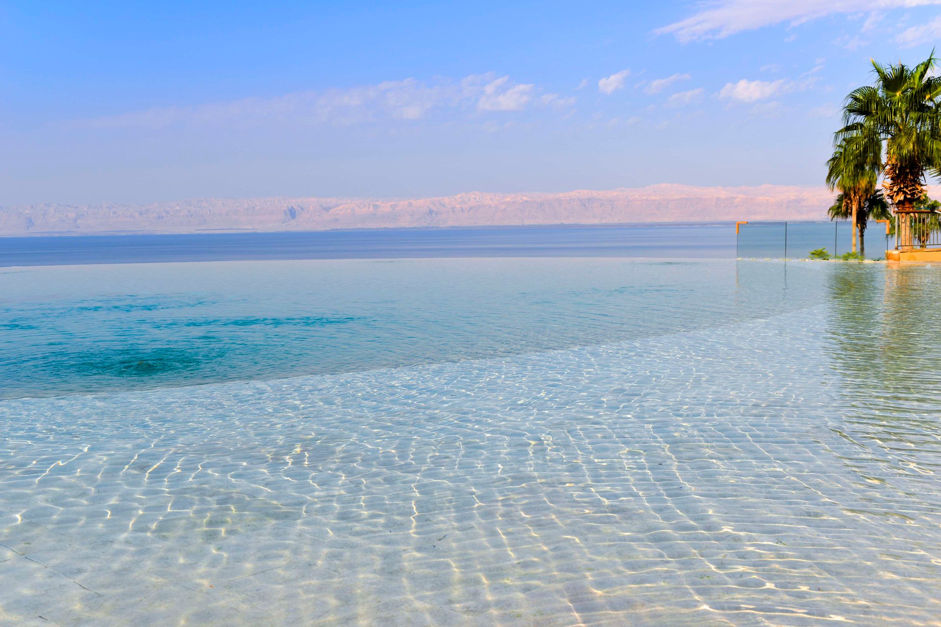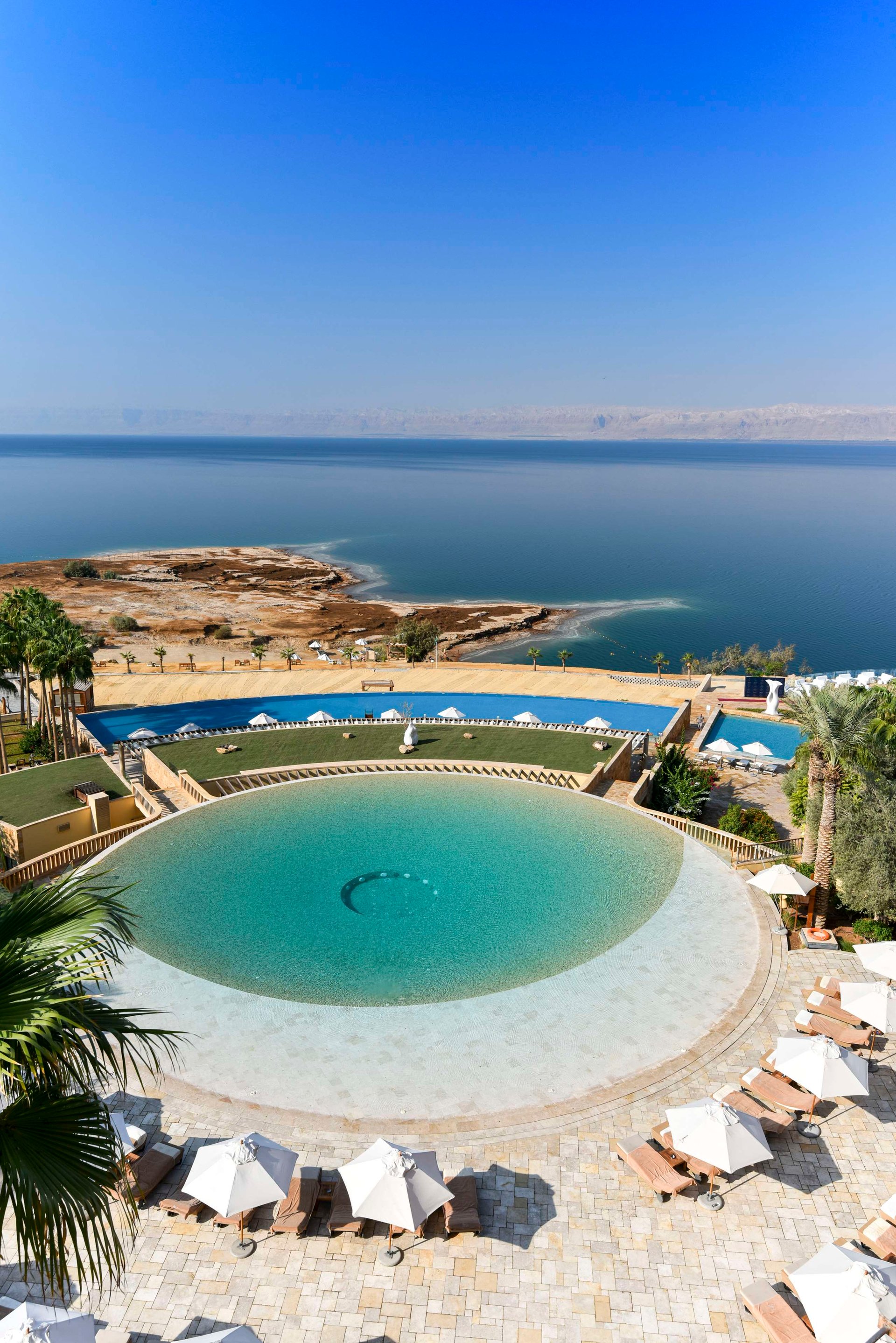 تمتع بأشعة شمس البحر الميت العلاجية أثناء الاسترخاء أو الغطس المنعش في أحد حمامات السباحة السماوية التسعة التي تتميز جميعها بإطلالات رائعة على البحر الميت الرائع.