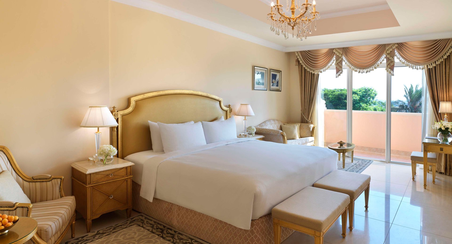 إن أجنحتنا المكونة من ثلاث غرف نوم مصممة بنمط أوروبي كلاسيكي مع أثاث من تصميم المُصمم الإيطالي فرانسيسكو مولون