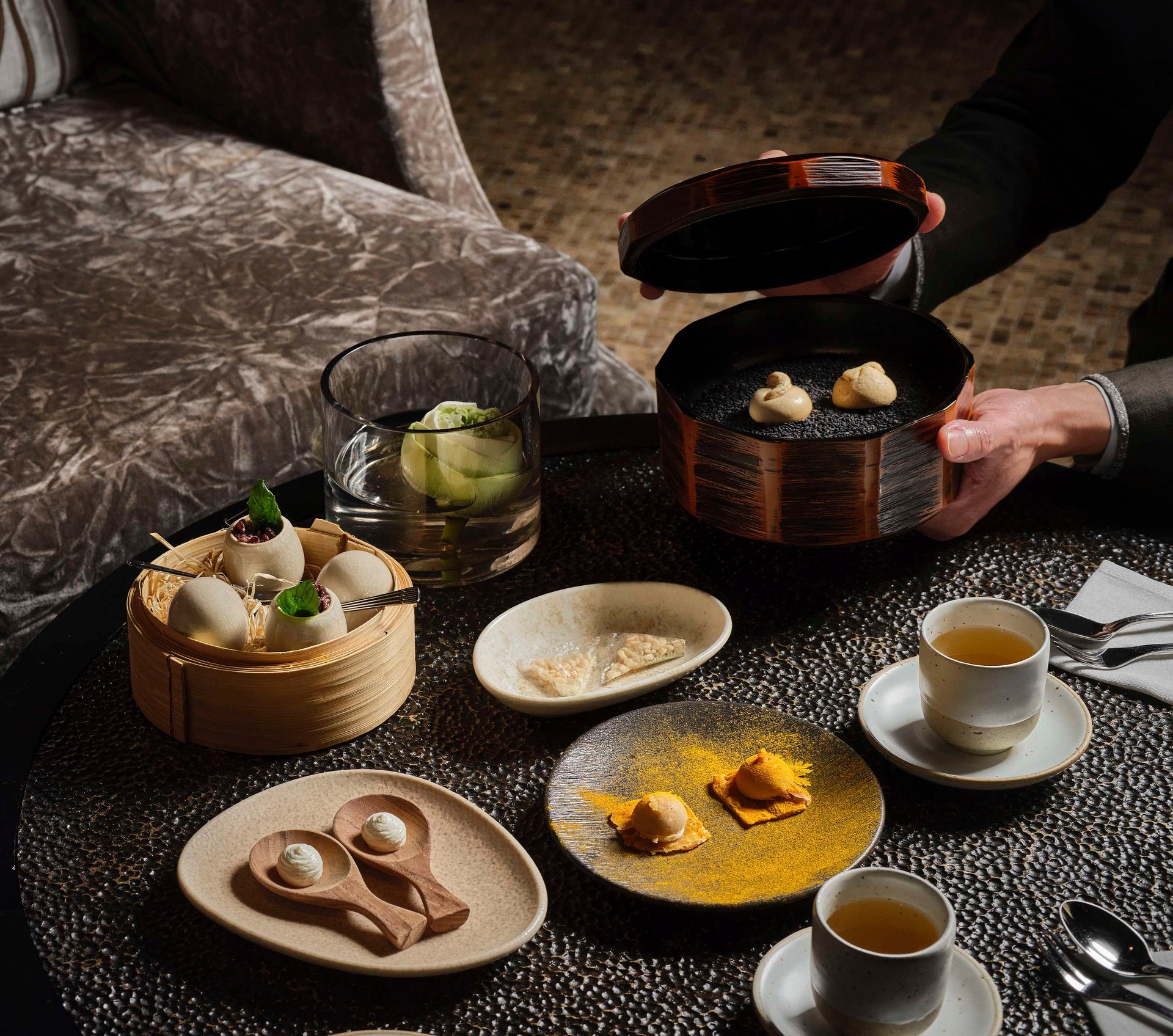 تخيل الأناقة السرمدية لمجموعات شاي الظهيرة المتداخلة بسلاسة مع فن المعجنات الفرنسية التي يبتكرها طاهي المعجنات التنفيذي، فرانك إيستل. ولكن انتظر، هناك المزيد! تُشكّل كل قضمه رقيقة تحية نابضة بالحياة للمكونات التايلاندية الطازجة، والمفعمة بالألوان المستوحاة من زهرة اللوتس الصيفية - جوهر الفن التايلاندي المعاصر للفنانة "جيبران "خون بانانا" توكيريز" .
