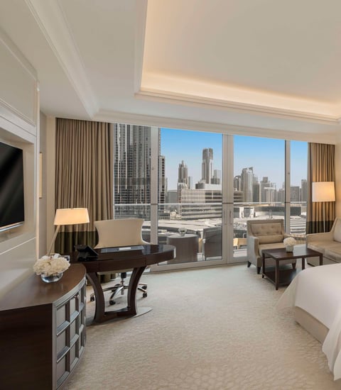 عيشوا أجواء الفخامة مع إطلالات مذهلة على برج خليفة والمناطق المحيطة الأنيقة، بالإضافة إلى الديكورات الراقية للغرف ووسائل راحة عالمية المستوى.