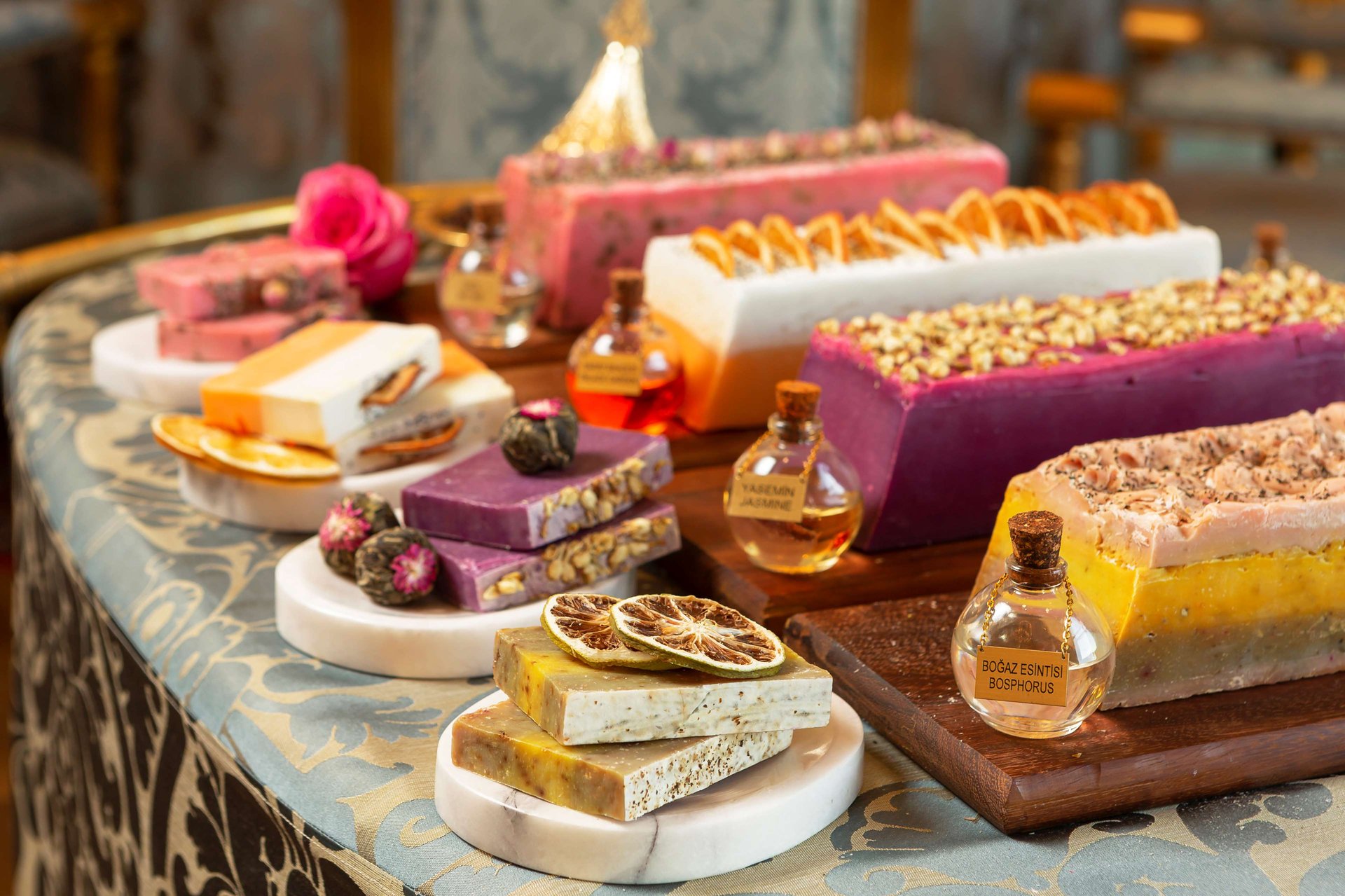 入住皇宮套房酒店的客人將享受100%純橄欖油手工皂,有薄荷,檸檬和綠茶,茉莉,橙花,玫瑰和熏衣草四種不同的香味。