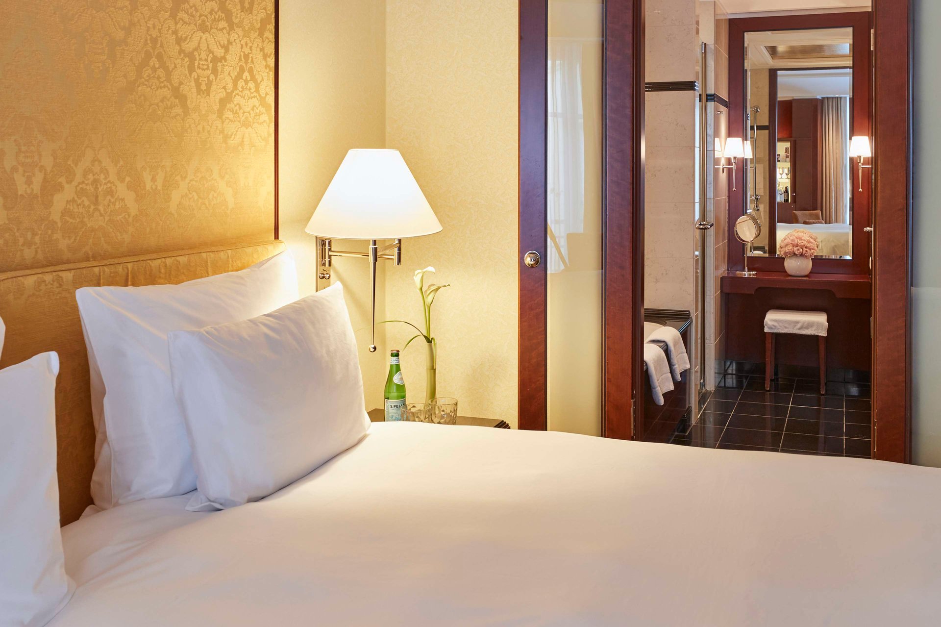 豪华房间面积约40平方米,尽显奢华与特色。房间朝向肃静的内部庭院或者街道,加上完善的配套设施,使得这里非常适合商务人士。高速宽带,办公桌以及笔记本电脑一样大小的保险箱可以为您在柏林市中心提供一个绝佳的办公场所。