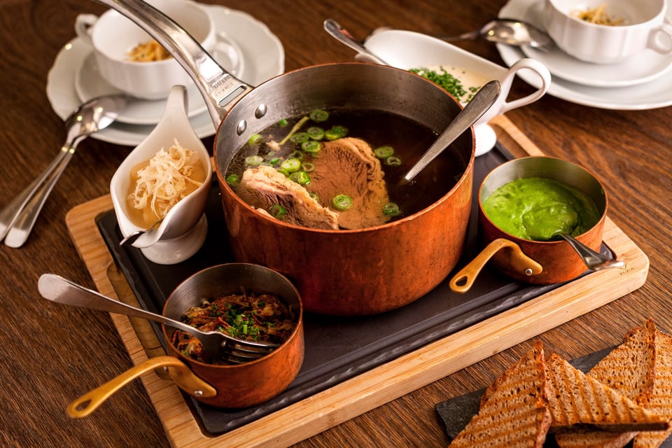 水煮牛肉是一道是这里的人气美食,它象征着 ÉS Bisztró 餐厅在星期日家庭餐上所展现的家常待客之道:精致的调味和丰富的口感构成了这道维也纳特色菜,食用这道菜相当于完成一种仪式。这是一款必尝美食,最好慢慢享用,从汤到骨髓及搭配的吐司和辣根,每一口都值得细细品味。