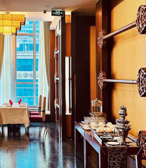 在和谐高雅的氛围里,大堂酒廊适合商务洽谈,悠然茶歇或品茗小憩。