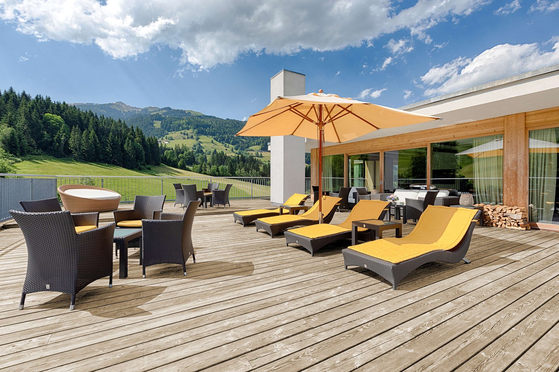 这间五卧室套房占据了度假酒店的整个 7 楼,是奥地利的大型套房,居住面积达 1020 平米,包括三个露台和一间设备齐全的厨房。顶层套房采用最精美的材料和时尚的室内设计,可欣赏到基茨比厄尔山的壮丽景色,映衬出阿尔卑斯豪华生活方式的缩影。