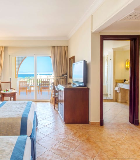 入住布置精美的客房和套房,欣赏波光粼粼的红海风光。
