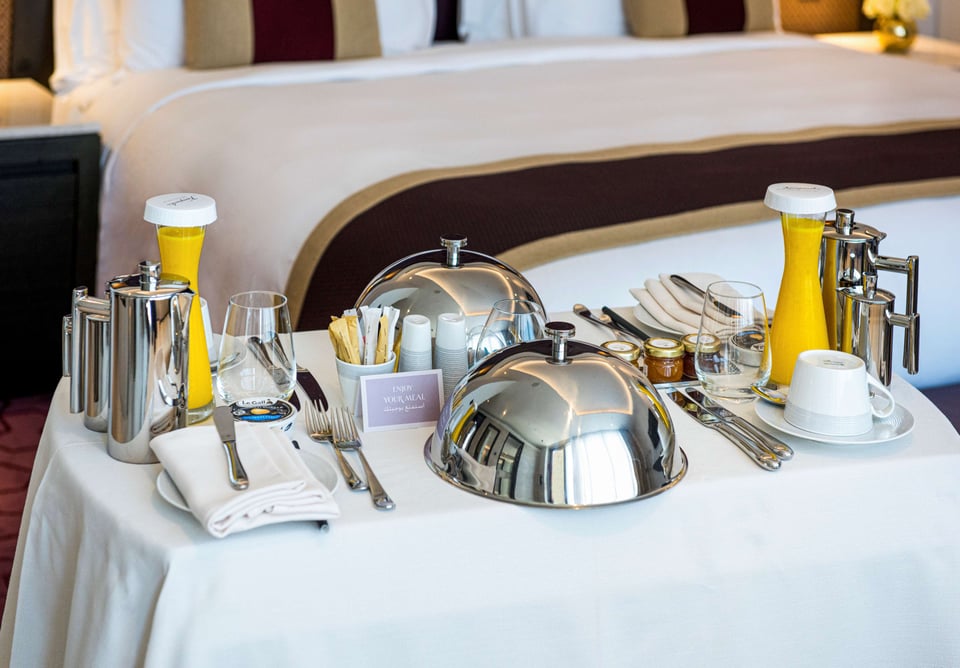 在客房内享受奢华的夜色并享用鲜美可口的晚餐,或在床上享用精致早餐并开始新的一天。