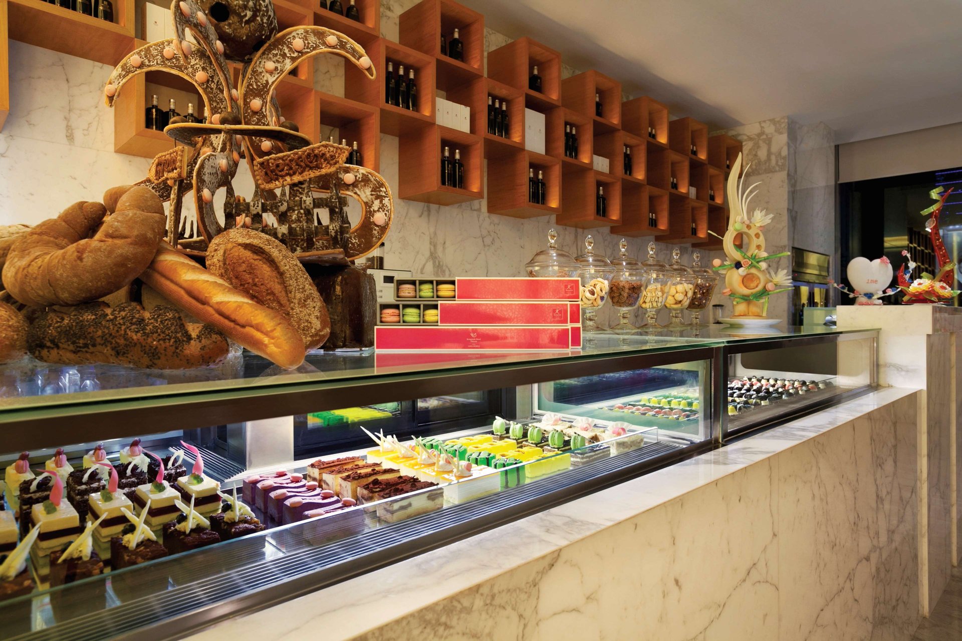 颇具欧式风格的美食廊位于酒店1层,共设有18个座位,高大落地窗及柔和灯光营造出温馨舒适的氛围。美食廊精选高品质现磨咖啡及精致饮品,我们提供多种新鲜出炉的特色手工产品,包括面包、招牌黑森林蛋糕、季节精选及当地特色甜品;另有丰富的午市选择如三明治小食、沙拉简餐等。宾客可在店享受美食亦可选择外带,让美好心情充满每一天。