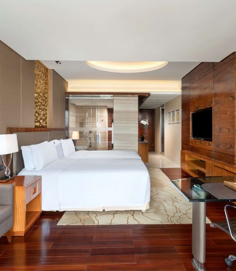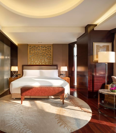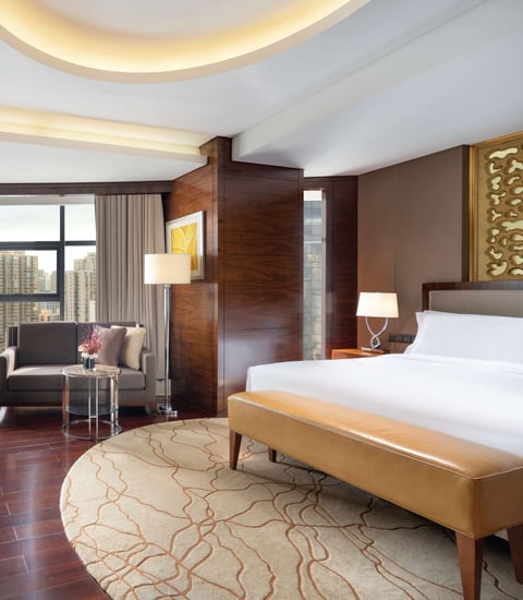 入住高级豪华客房后享受融合了中国传统特色及欧洲奢华,俯瞰整个城市的美景。
