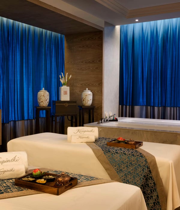 5间单人理疗室,1间双人豪华理疗室,在静谧的环境及精油的芬芳中,让您远离城市的喧嚣,在凯宾斯基水疗中尽情放松深吸。