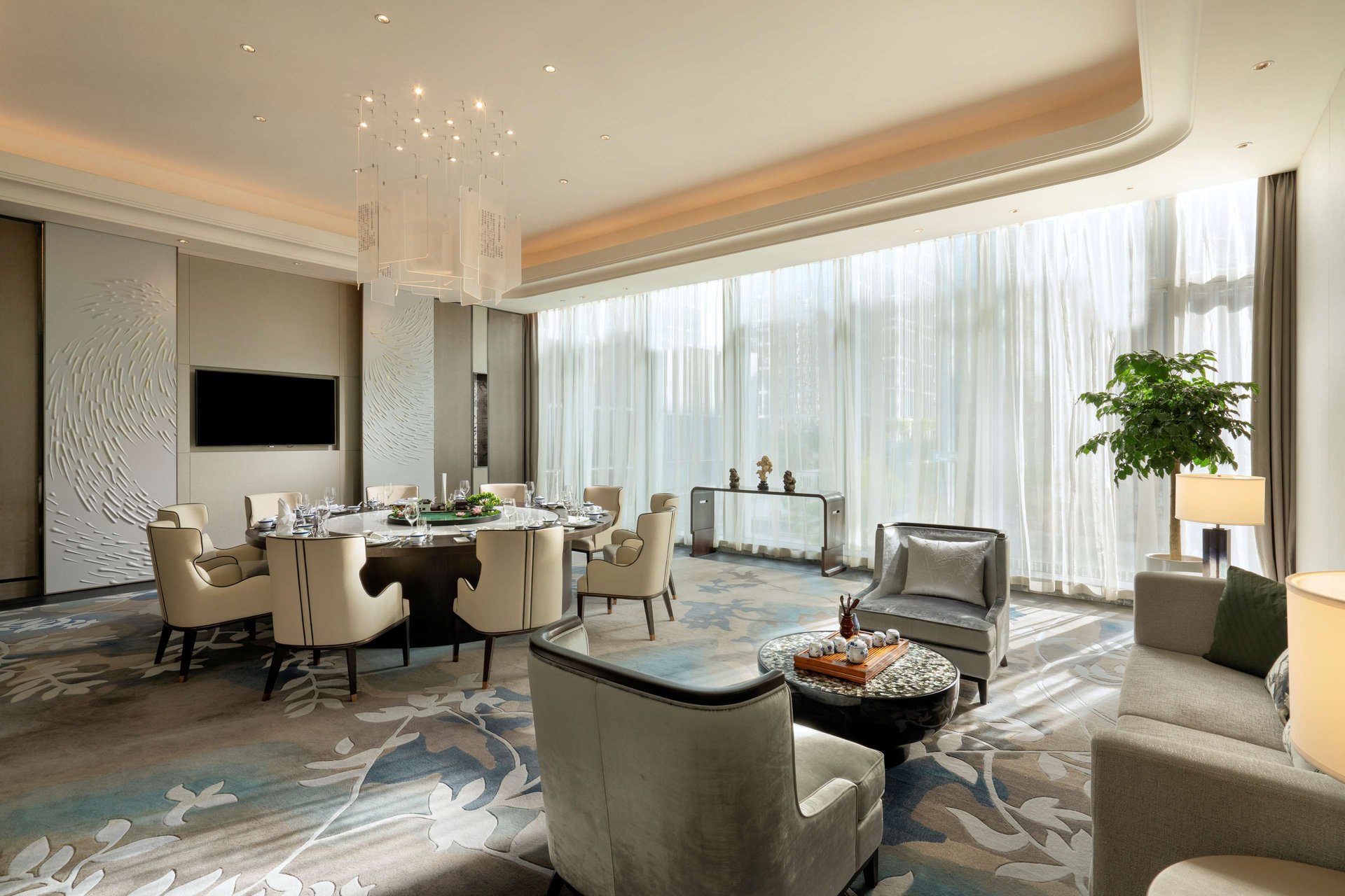 从初入餐厅的浓墨画卷,到随处可见的黑陶艺术摆件,云泉中餐厅处处散发着高贵深邃的格调,为宾客谱写六艺之“书”。 我们以现代煮艺打造地道齐鲁菜系、孔氏官府菜及粤菜经典;7个独立包间为宾客提供雅致静谧的私密用餐环境。中餐厅大厅可容纳44位客人同时用餐,包间至多可容纳106位客人;这里是商务用餐、家庭聚会及特别庆祝场合的理想之所。