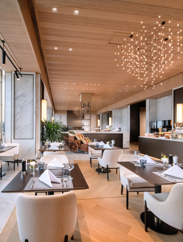 云景全日制餐厅位于酒店53层,餐厅氛围现代时尚,开放式厨房理念是餐厅特色之一,并拥有可俯瞰城市景观的宽阔视野。我们提供融合欧式风味、本地鲁菜及国际特色的各式菜肴。无论是商务用餐抑或是浪漫特色晚餐,云景全日制餐厅将是您享受云端味蕾之旅的理想之所。