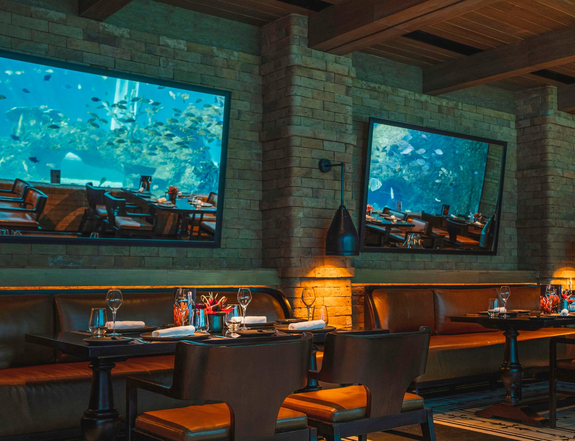 食客们将在休闲又精致的Koral餐厅享用受到印度尼西亚沿海风味的灵感和当地食材烹制的优雅菜肴。Koral不仅仅是一家餐厅,它还提供了完整的小餐馆体验,将美味的食物、悠闲的气氛和水族馆的罕见氛围结合在一起,加上具催眠性的配乐,捕捉了海浪之下的魔力和神秘。