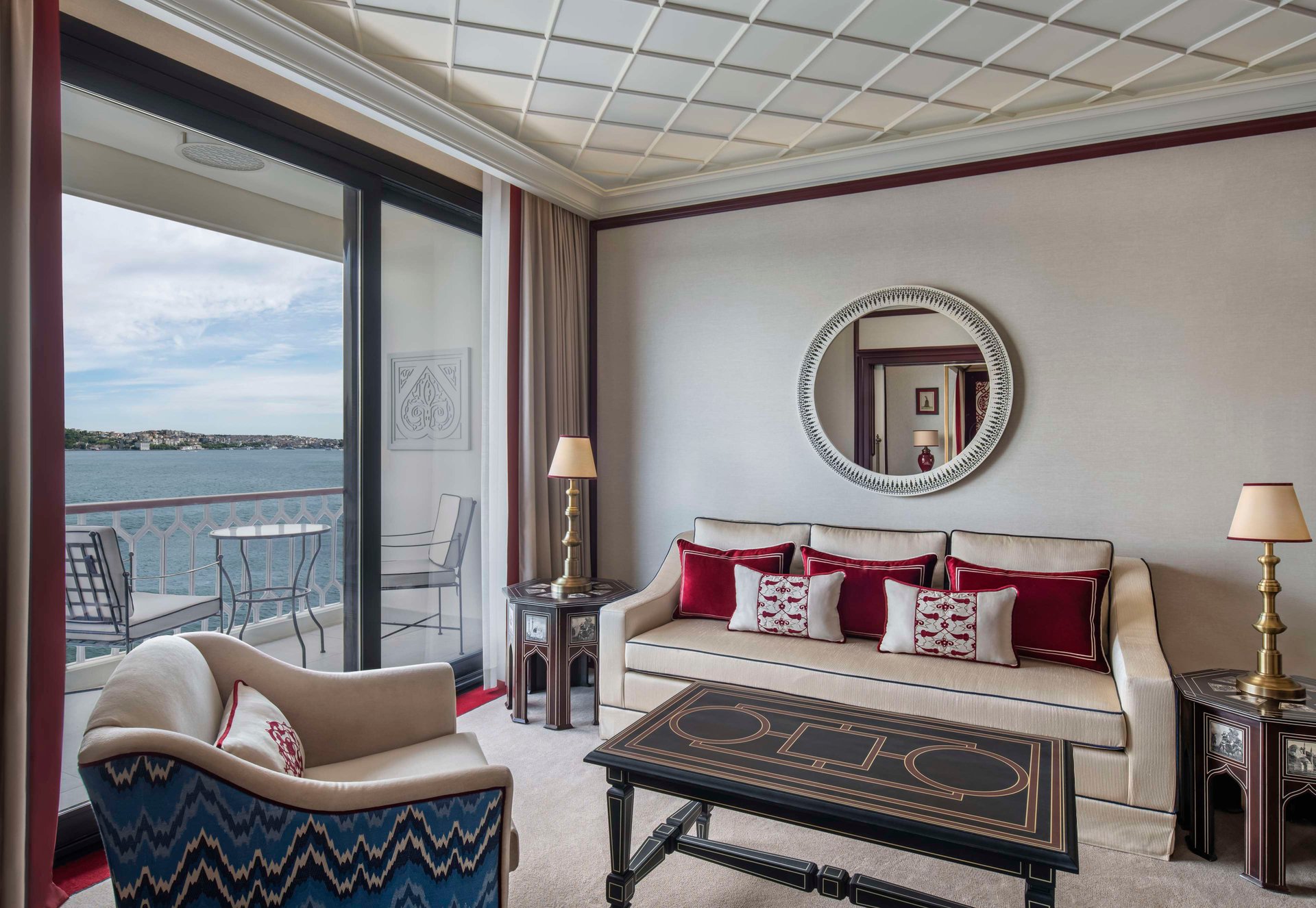 Genießen Sie von Ihrem Balkon aus einen herrlichen Panoramablick auf den Bosporus und die historische Halbinsel. Auf der obersten Etage des Hotels gelegen, mit Panoramablick auf den Bosporus. Beide Suiten verfügen über zwei Balkone, ein großzügiges Wohnzimmer, einen Schreibtisch und eine Bibliothek im großzügigen Eingangsbereich sowie ein Schlafzimmer mit Bad, ein Wohnzimmer und ein Himmelbett.
