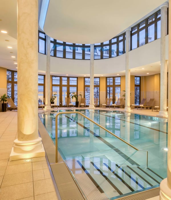 Tauchen Sie ein in das Leitthema des Spas „Sanus per aquam“ und entdecken Sie den Pool, die berühmte Mauritiusquelle und den Kneippbach des Kempinski The Spa St. Moritz.