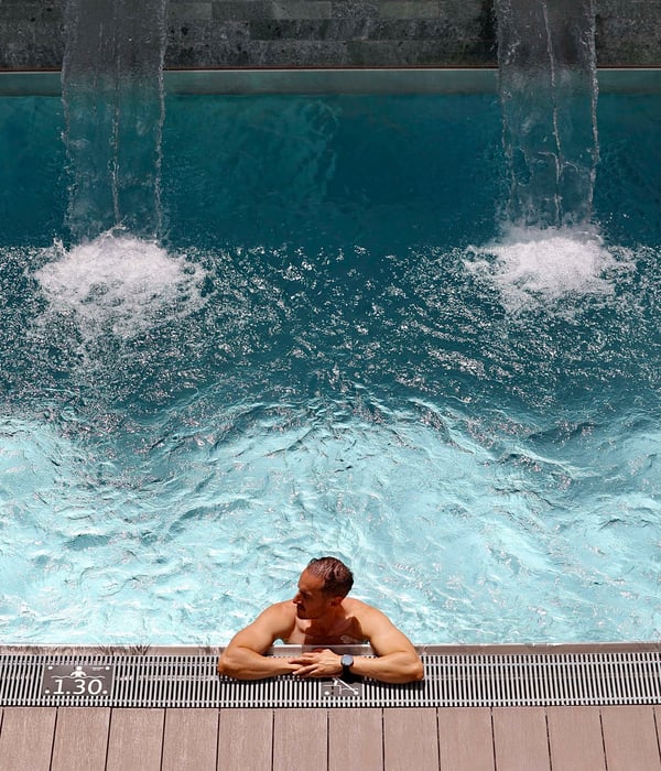 Gönnen Sie sich die Wärme unseres Innenpools, erholen Sie sich im Freien im Outdoor Pool oder erleben Sie die Heilkräfte der Mauritius-Quelle.