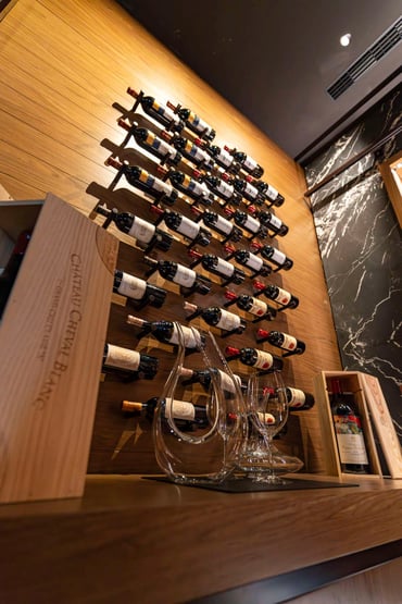 In einem privaten Bereich unseres Luxushotels bietet der Verkostungsraum eine Atmosphäre, die sowohl stilvoll als auch gemütlich ist. Elegante Einrichtung, sanfte Beleuchtung und leise Gespräche schaffen ein Ambiente, das gleichzeitig entspannt und anspruchsvoll ist.