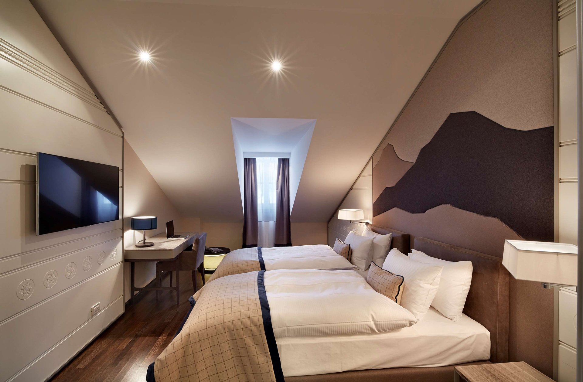 Diese grosszügige Suite besticht durch eine umlaufende Terrasse mit Panoramablick auf Wald und Berge. Der Wohnbereich verfügt über einen grossen Esstisch für gemeinsame Mahlzeiten. Vier individuell gestaltbare Schlafzimmer sind mit vier modernen, umweltfreundlichen Badezimmern mit Doppelwaschbecken verbunden. Für höchsten Komfort sorgen Flachbildfernseher, eine Minibar, ein Safe und Highspeed-WLAN – der ideale Rückzugsort für Grossfamilien oder Gruppen.