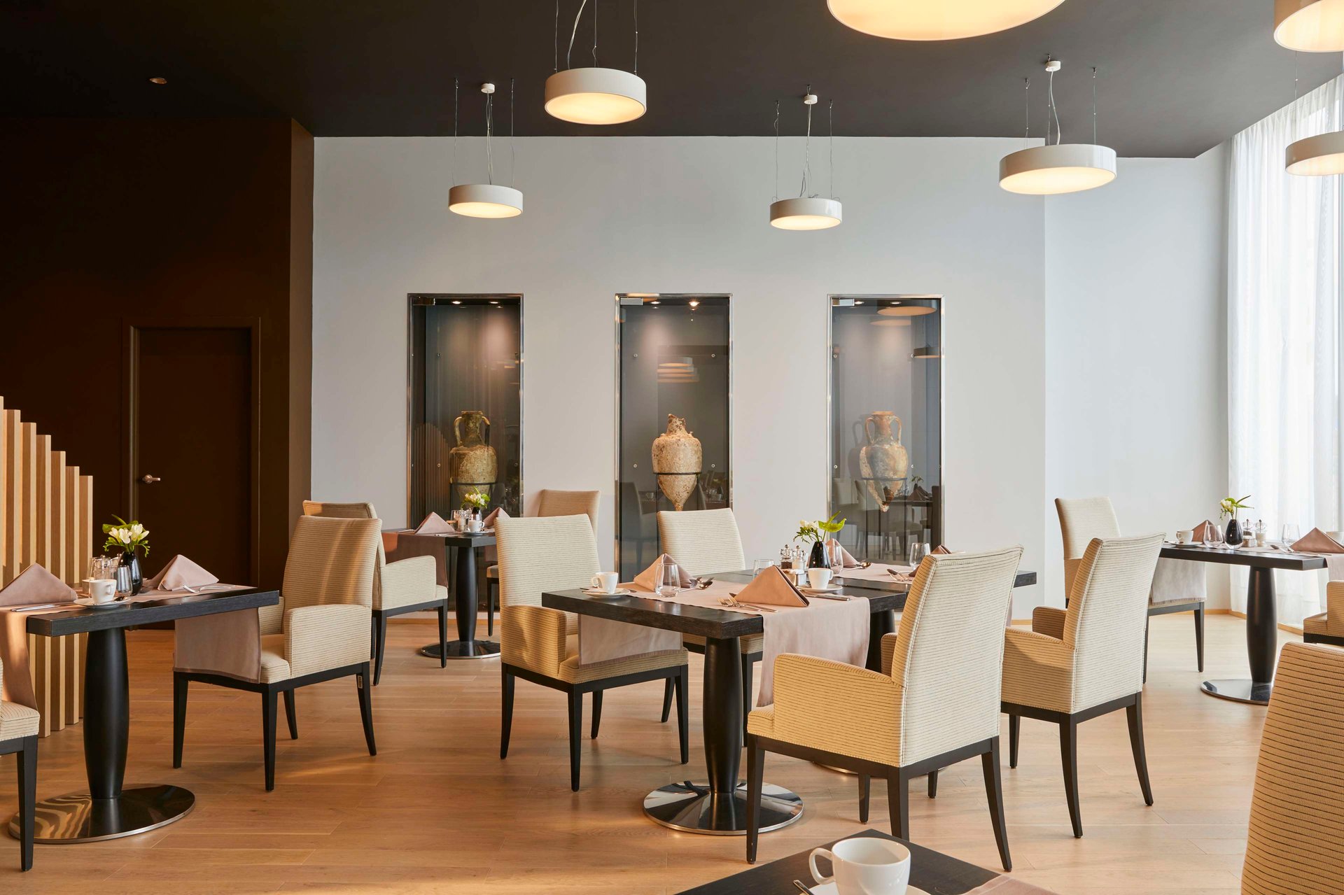Der gleich neben dem Hotelfoyer gelegene Veranstaltungssraum Amphora bietet verschiedene Bestuhlungen für bis zu 120 Personen.