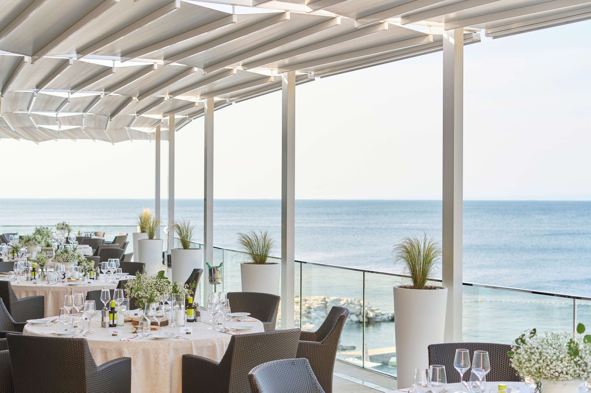 Das Restaurant Kanova auf der obersten Etage des Konferenzzentrums und über dem Strand  ist die beste Wahl für ein Abendessen bei Sonnenuntergang. Genießen Sie die Meisterstücke unseres Chefs, vom feinstem gereiften Fleisch bis zum frischen Tagesfang, in der romantischen Umgebung mit kerzenbeleuchteten Tischen und Blick auf die Adria. Die Terrasse des Restaurants bietet schöne Blicke auf kroatische, slowenische und italienische Küstenstreifen, bis hin zu den Randgebieten der Lagune von Venedig.