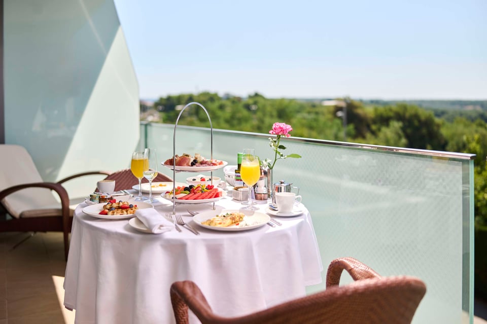 Der Blick aus unseren wunderbaren und geräumigen Familiensuite mit Oliven Gartenblick rahmt die istrische Landschaft und den anliegenden Golfplatz perfekt ein. Die Suite hat ein großes Schlafzimmer, einen separaten, großzügig bemessenen Wohnbereich und einen 14 m2 großen Balkon mit Tisch und Stühlen, für Ihren angenehmen Familienurlaub ausgestattet ist.
