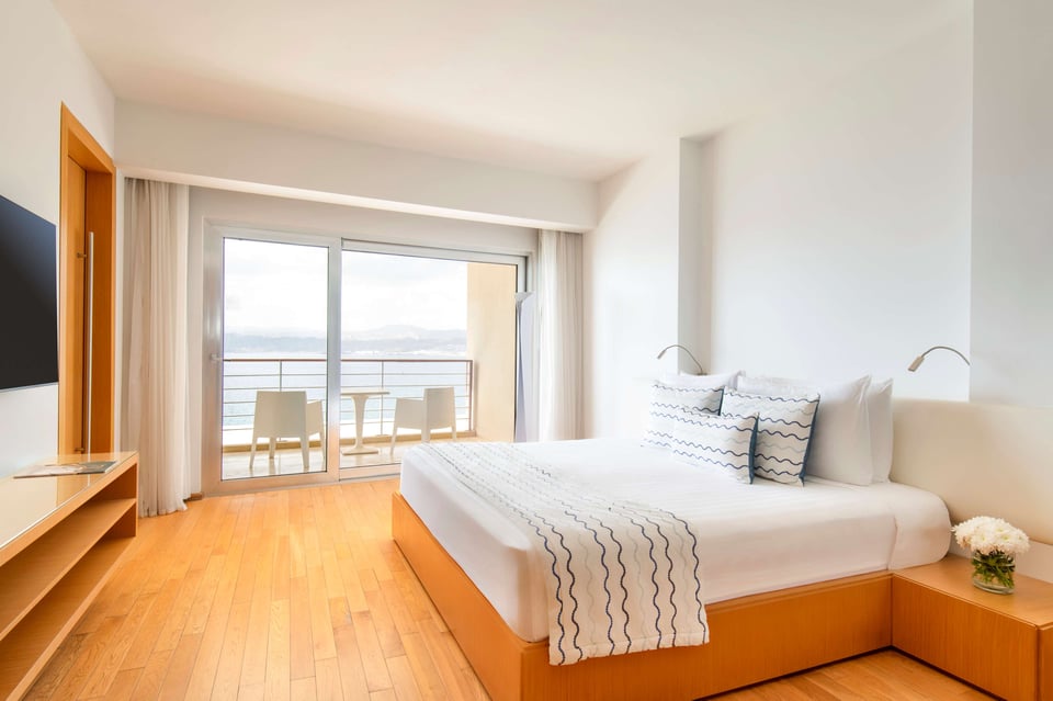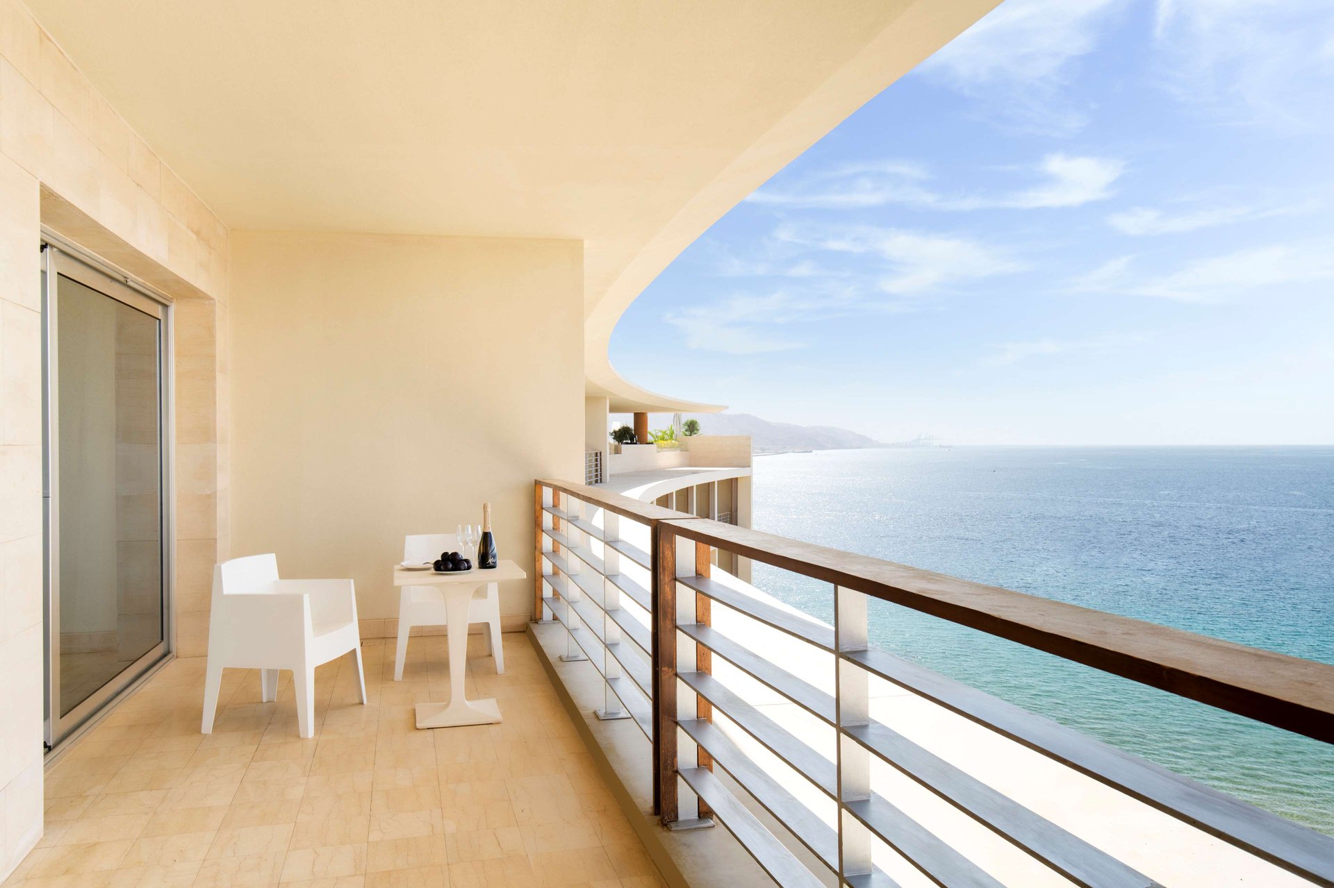 Extravagant und exquisit bietet die Executive Deluxe Suite verbesserte Annehmlichkeiten und umfassende Einrichtungen, darunter ein separates Wohnzimmer, eine Minibar und einen abgeschiedenen Balkon mit Blick auf das Rote Meer. Die Suite verfügt über ein separates Schlafzimmer mit Glaswand-Badezimmer und eine Aussichtsterrasse, die ihresgleichen sucht. Eingebettet in die obersten zwei Etagen lassen Sie diese Suiten sicher mit den Wolken schweben.
