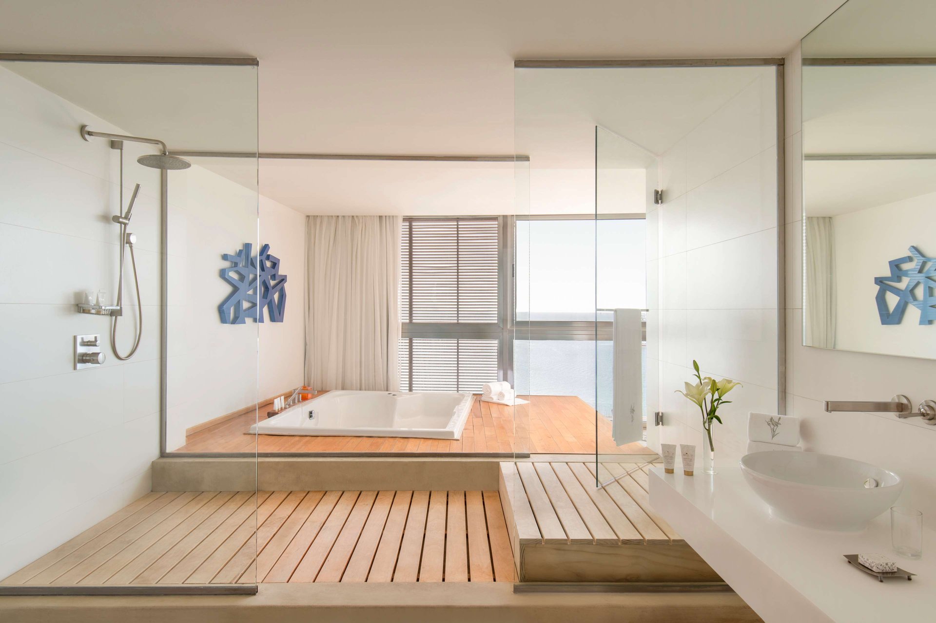 Versteckt in einem ruhigen Teil des Hotels ist die Executive Panoramic Suite ein malerisches Refugium, in dem sich ein elegantes Wohnzimmer mit erstklassiger Ausstattung und privatem Balkon, ein separates Schlafzimmer mit privatem Innen-Whirlpool und einem malerischen Blick auf das Rote Meer verflechten um ein großzügiges Porträt von Verwöhnung und Entspannung zu schaffen.