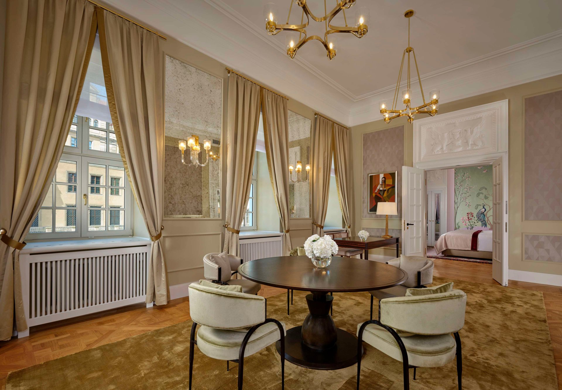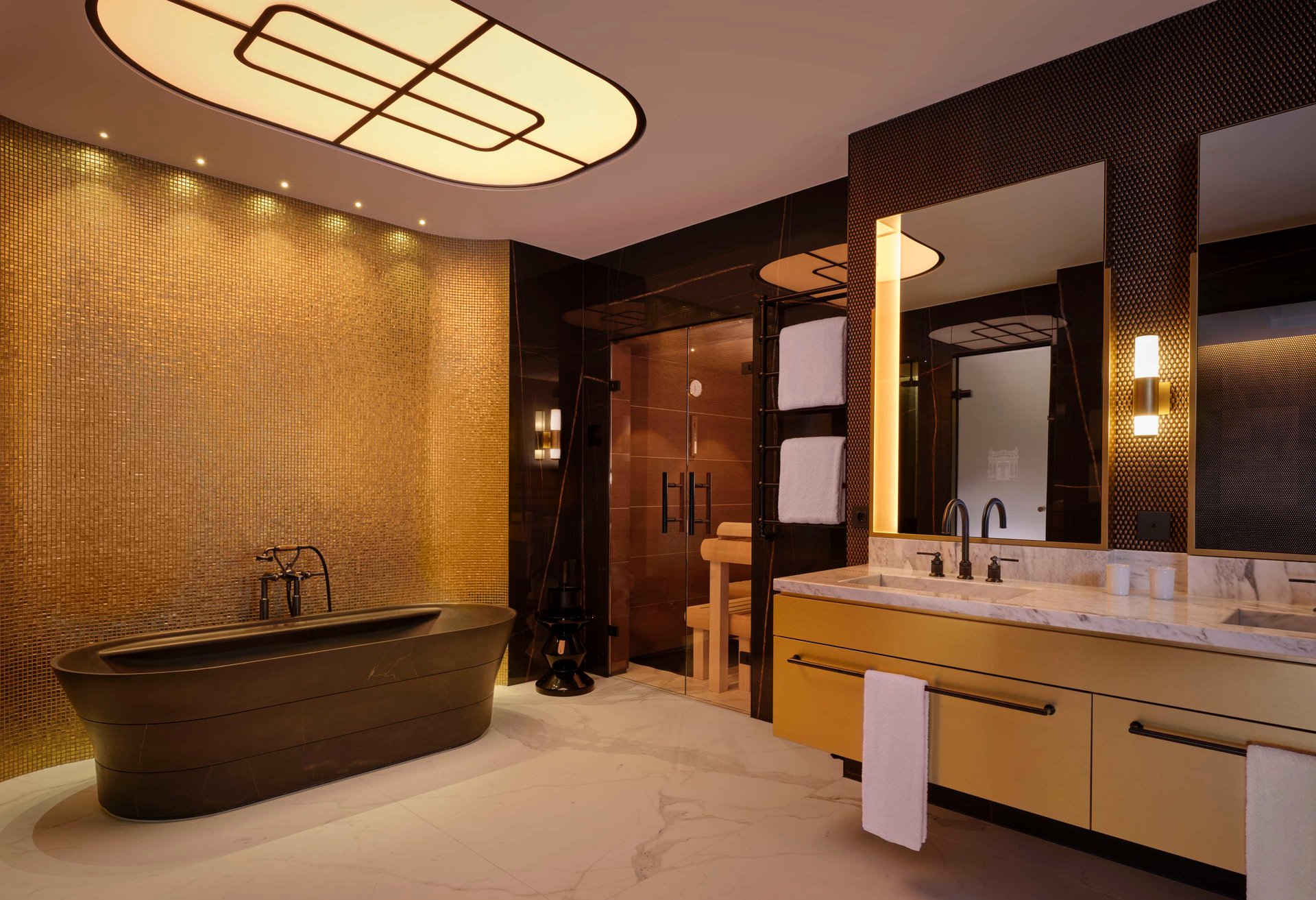 Der Aufenthalt in der Royal Suite ist ein Wohngenuss der Extraklasse. Mit einer großzügigen Fläche von 380 qm bietet sie den perfekten Rückzugsort für Luxusliebhaber. Das einzigartige Design vereint kraftvolle Elemente mit zarter Ästhetik und schafft so eine ganz besondere Atmosphäre. Ein Highlight ist zweifellos der private Wellnessbereich – ein unvergessliches Erlebnis.