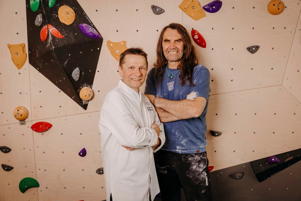 Auch abseits der Küche zieht es Heimann in luftige Höhen. Thomas Huber, Extremkletterer und Mitglied der Huberbuam, sieht darin Parallelen zu Heimanns Handwerk: “Uli hat sich schon lange ganz nach oben gekocht – vielleicht, weil er im Herzen ein Bergmensch ist. Einer, der das Unbekannte sucht, sich keiner Herausforderung scheut und auch bei Sauwetter mit Humor dabei ist. Ein Gipfelstürmer, der in seiner Kreativität seine Freiheit findet. Gleichgesinnte erkennen sich – und so verbindet uns eine enge Freundschaft. Oft durfte ich mit seinen kulinarischen Kreationen auf eine Reise gehen, und ja, man schmeckt es einfach: Seine Inspiration kommt aus den Bergen. Er kocht wie ein Vertikalkünstler – kreativ, mutig, mit all seinen Sinnen. Von Instinkten gesteuert und zaubert den Geschmack der Berge auf den Teller.”