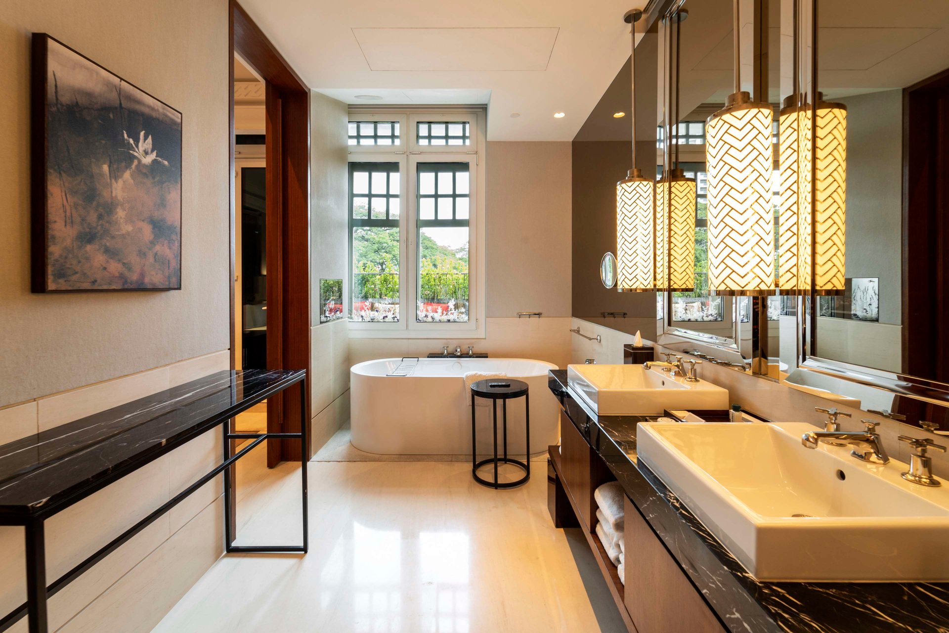 Die Außenterrasse unseres Terrace Room (45 m² / 484 ft²) ist ideal, um sich in der Morgensonne zu bräunen oder den nächtlichen Blick auf Singapur zu genießen. Es verfügt über ein Kingsize-Bett, ein Badezimmer mit einer tiefen Badewanne am Fenster und eine Ladestation mit integrierten Ladekabeln neben dem Bett. Erleben Sie ultimativen Luxus in einer ruhigen und doch lebendigen Umgebung.