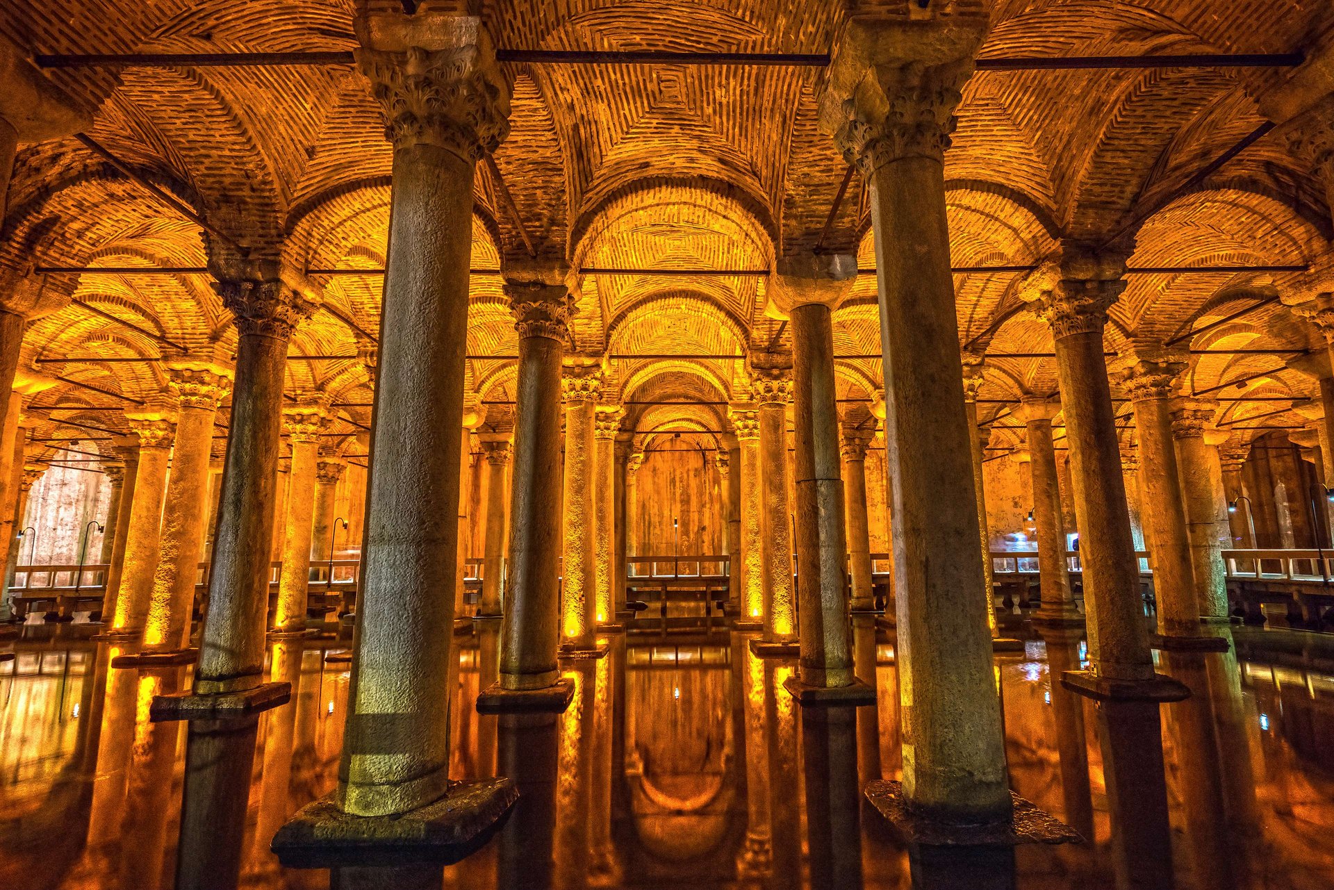 Basilica Cistern, Largest of several hundred ancient cisterns: