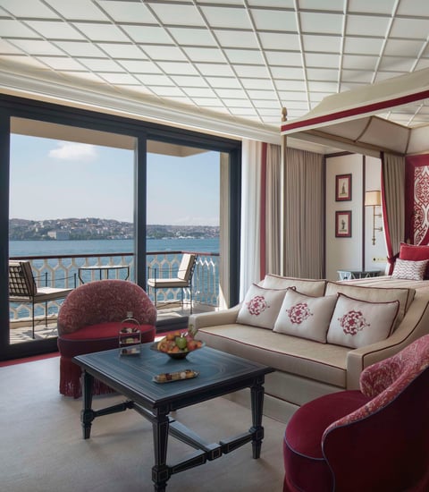 The newly redesigned rooms reflect royal Ottoman grace and offer a 45-degree Bosphorus view.