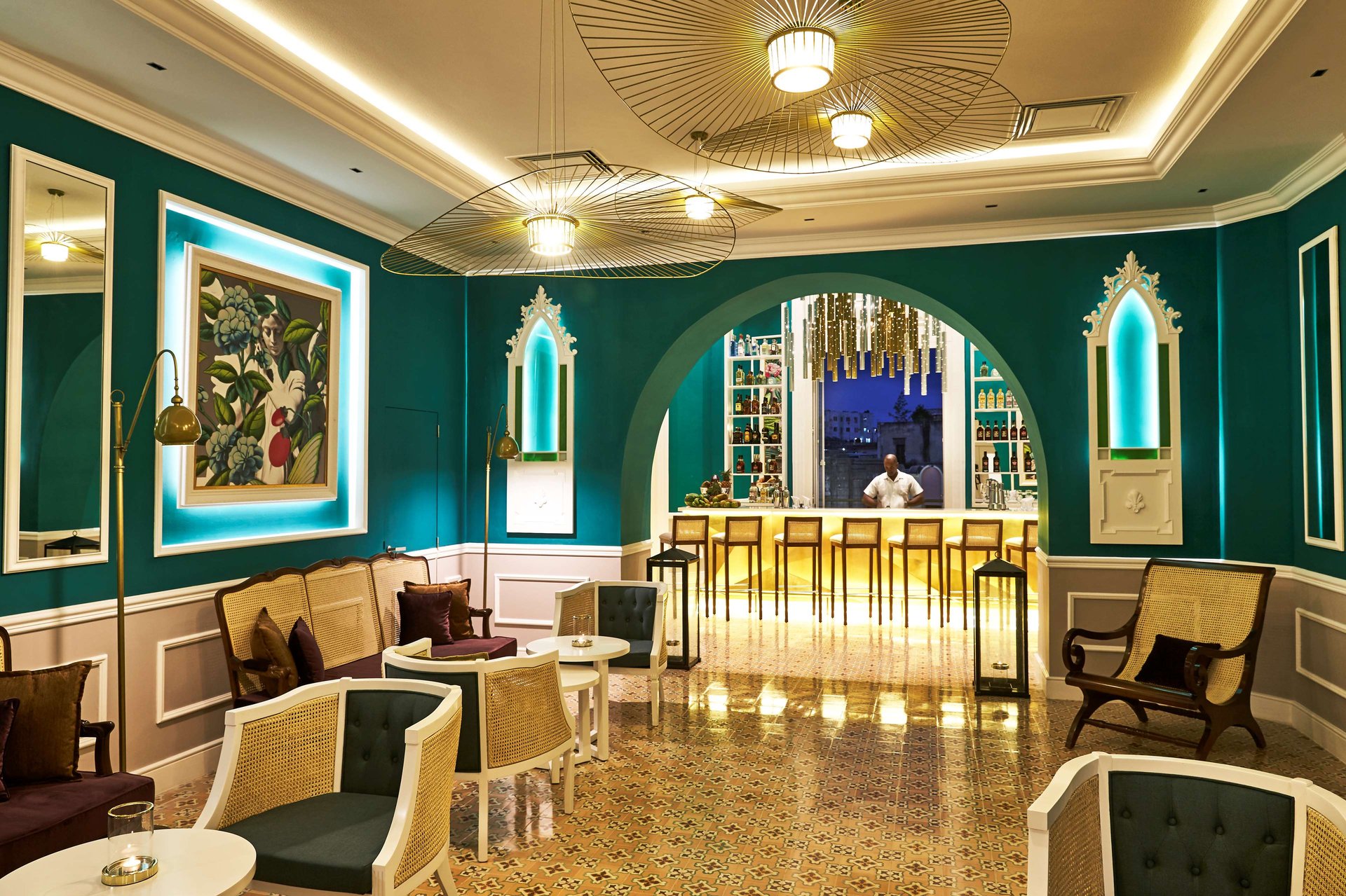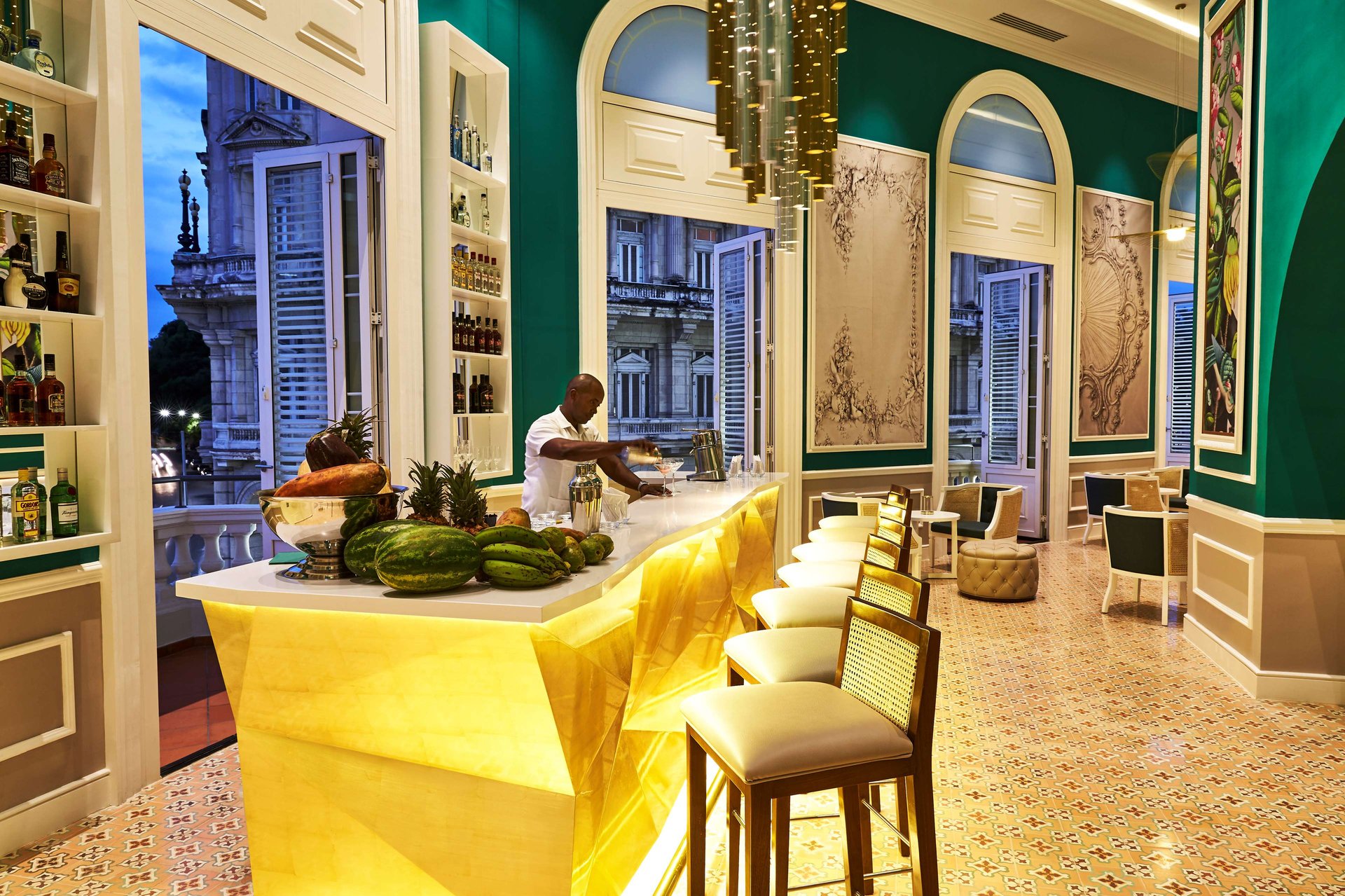 Located on the first floor, with a privileged view opposite the famous Cuban Bar El Floridita, the name Constante is a tribute to the creator of the Daiquiri. Specialised in traditional Cuban cocktails based on the 10 most awarded national rum brands. The interior design is inspired by a classic cityscape in a vintage setting. Perfect space for cocktail and tapas enthusiasts, with seating for 31 people inside.