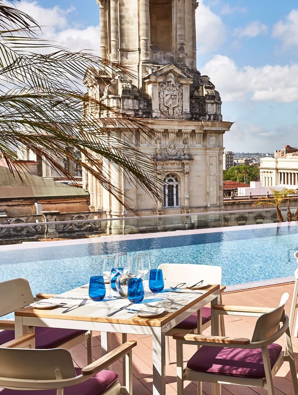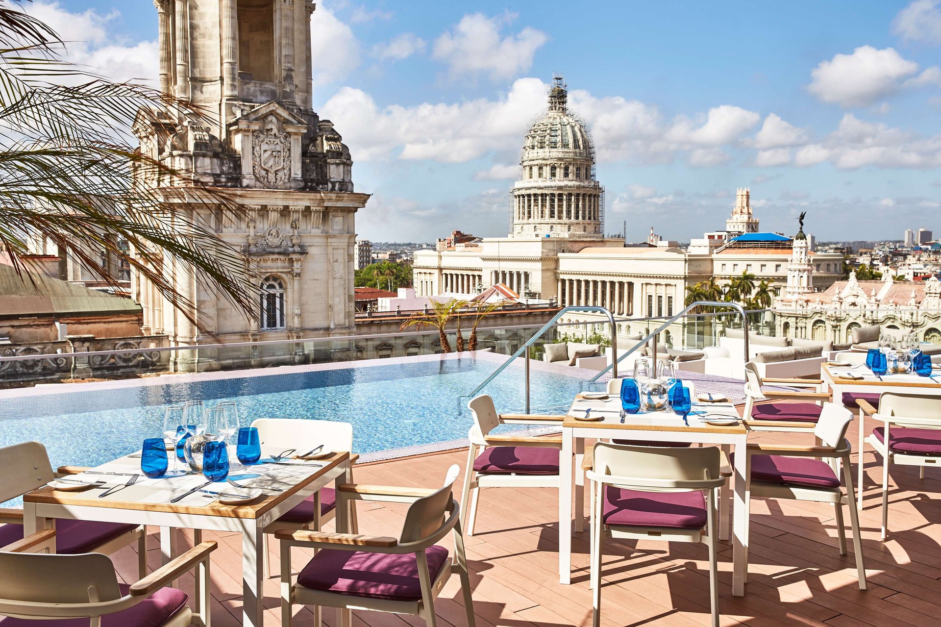 Our professional and personalised service team adapts to your wishes, tastes and preferences. The panoramic restaurant  San Cristobal and its terrace are the perfect place for special celebrations and meetings for breakfast, lunch and dinner, or cocktail parties that take advantage of the magnificent views of Havana at any time of the day. With its proximity to the meeting rooms on the upper floor, you can plan business lunches with great food and an amazing view.