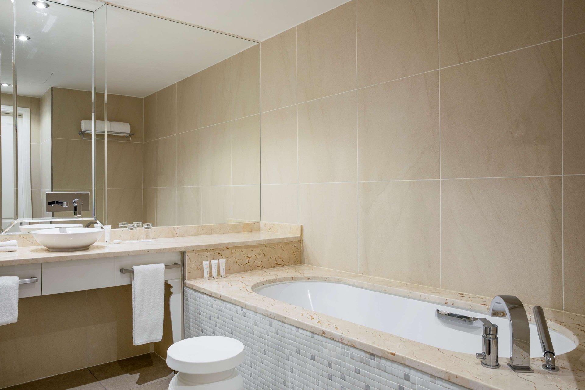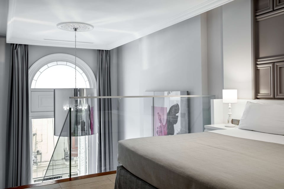 Two levels suite overlooking Havana City. Large sitting area downstairs with the bedroom  upstairs. King Bed, room features a flat screen TV, private safe, mini bar and automatic Italian coffeemaker. Wireless Internet. Guest bathroom dowstairs, whereas the large bathroom upstairs incluides a shower cabin with a rain shower, seperate bathtub and 1 sink. Max capacity: 2 persons Mesures: 64 nsq m