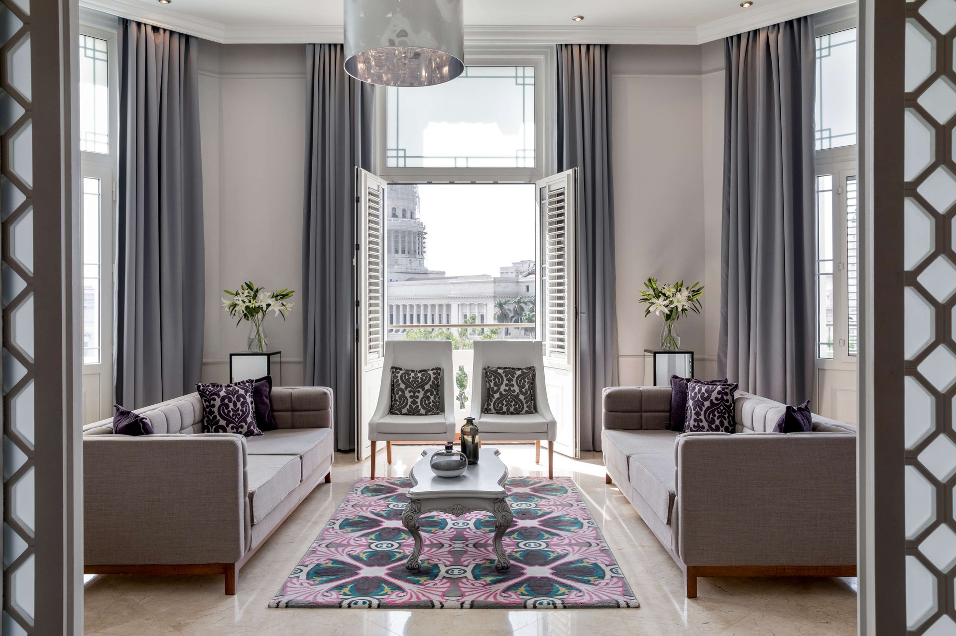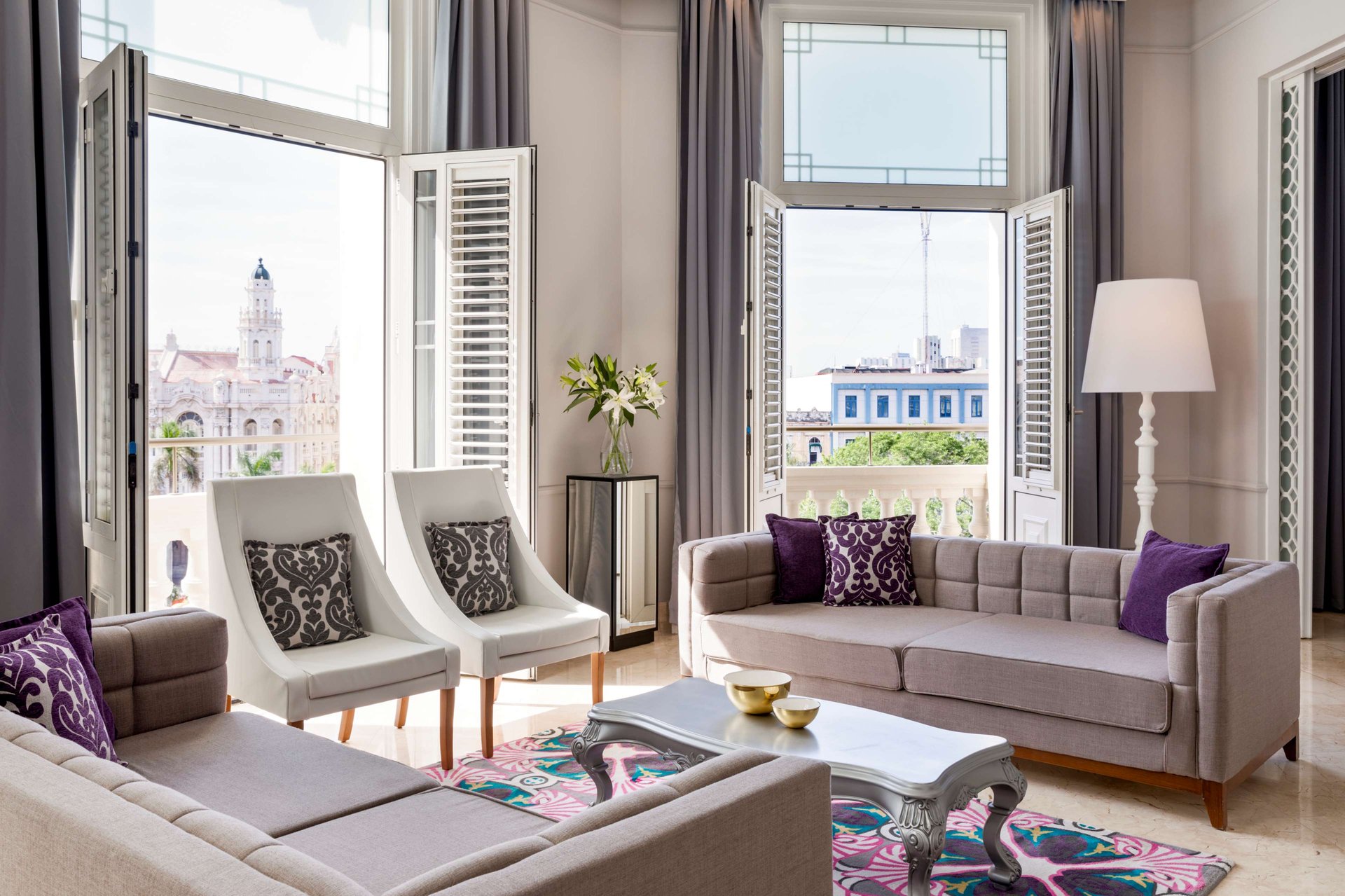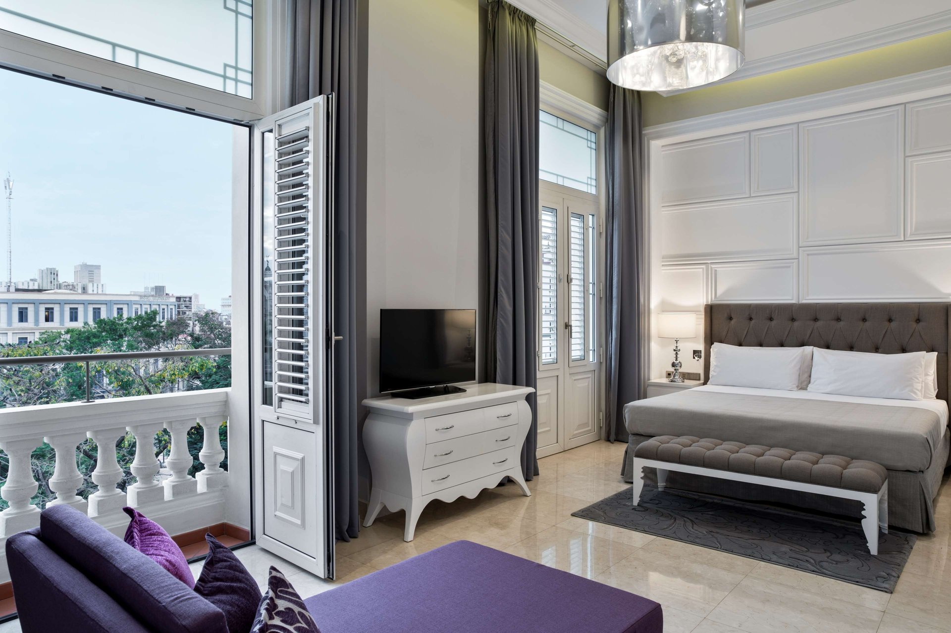 Overlooking the Central Park and the National Museum of Fine Arts. Suite measures 150 sq m. Large living room with 3 large french doors, separate dining area, separate guest toilet as well as a small kitchenette. Separate bedroom with King bed and large walking closet Large bathroom with jacuzzi bathtu, shower cabin, 2 sinks and a bidet. Also features flat screen TV, safe, mini bar and coffeemaker