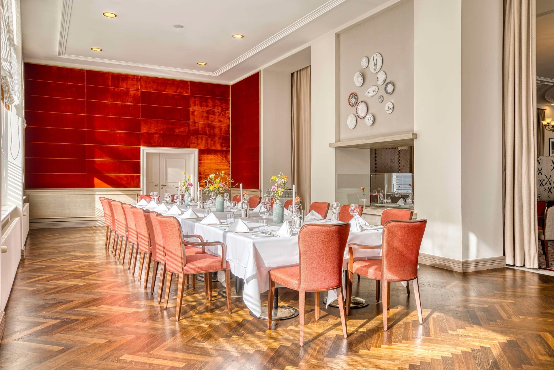 Host grand events in St. Moritz at Grand Restaurant Les Saisons, accommodating up to 264 guests in a luxurious banquet setting, perfect for any large-scale celebration