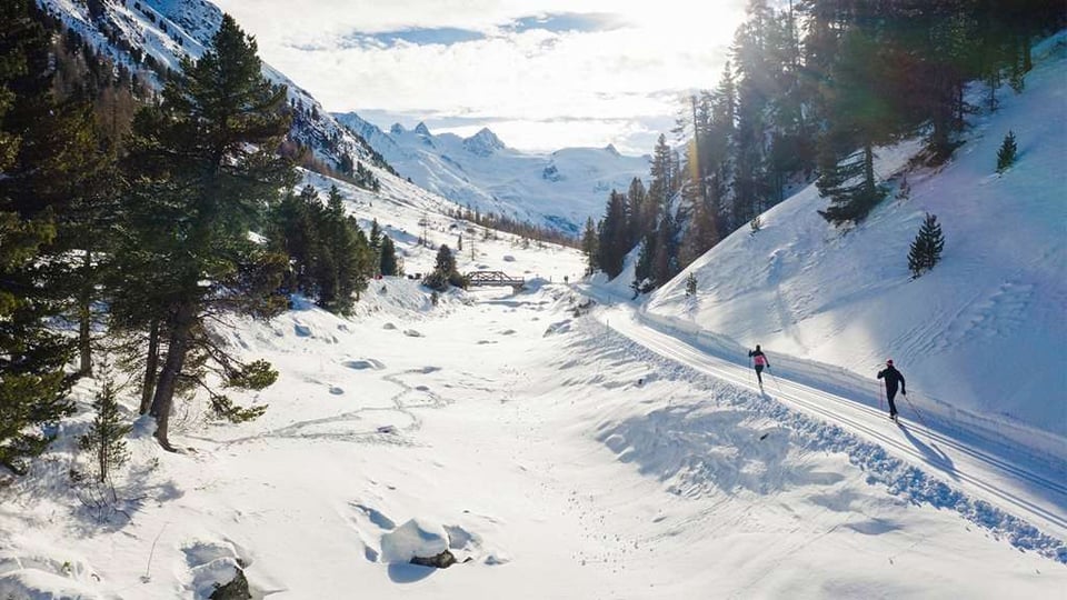 Sixty-five kilometres of Scenic Beauty: La Diagonela offers a classic-technique cross-country skiing experience through the stunning Upper Engadin, starting and finishing in Zuoz.