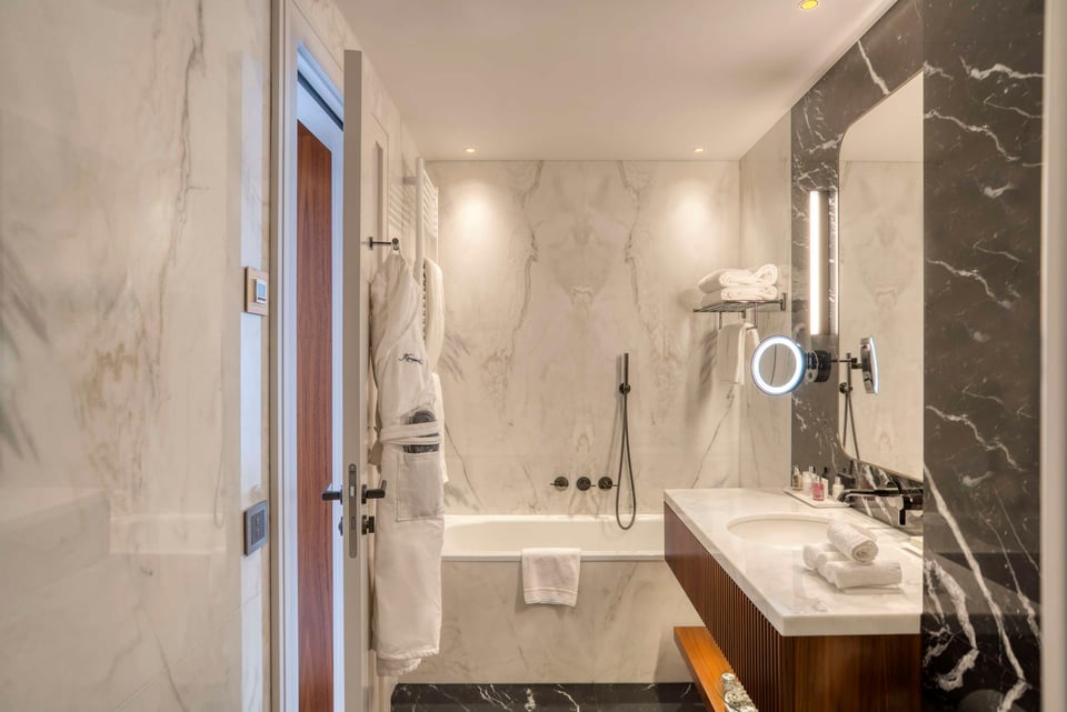 Enjoy serene views of the Engadine forest from this tranquil room. King-size or twin beds are complemented by a bespoke pillow menu, allowing you to customise your comfort for a perfect night's sleep. The modern en-suite bathroom features a refreshing shower and premium toiletries. Conveniences include a flat-screen TV, minibar, personal safe and complimentary high-speed Wi-Fi, all set within a calming minimalist alpine design that promotes rest and relaxation.