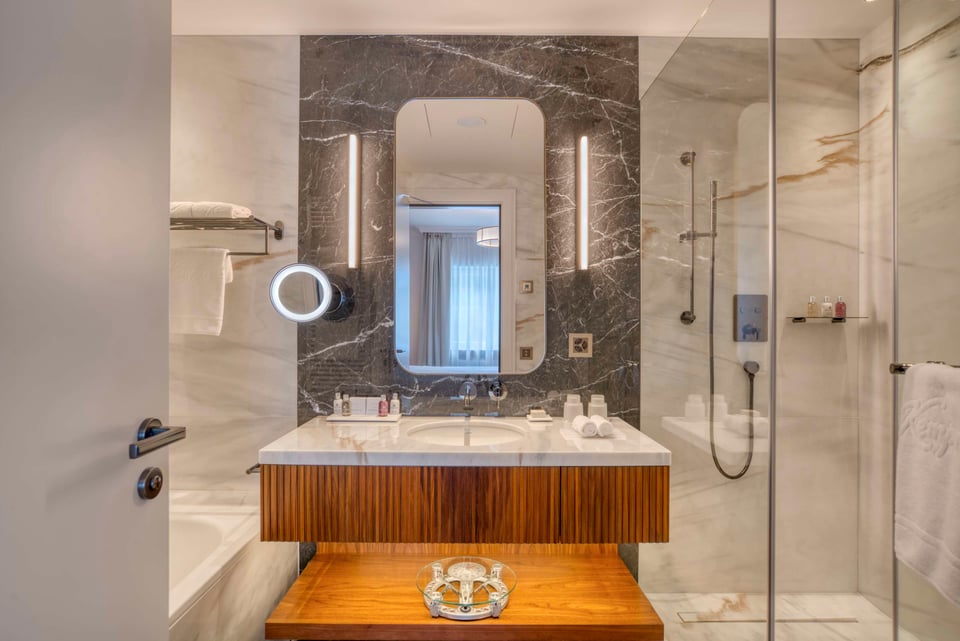 Step across the threshold and feel the world outside melt away. The subtle, clean scent of Larch wood, a signature of Engadine craftsmanship, envelops you in a warm embrace. Your gaze is drawn to the window, where the Alps stand in silent majesty, their peaks painted by the morning light. After a day of mountain adventure, sink into the king-size bed, where crisp, locally sourced linens feel cool and soothing against your skin. This is your sanctuary – a timeless alpine haven crafted for quiet moments and profound rest in the heart of St. Moritz.