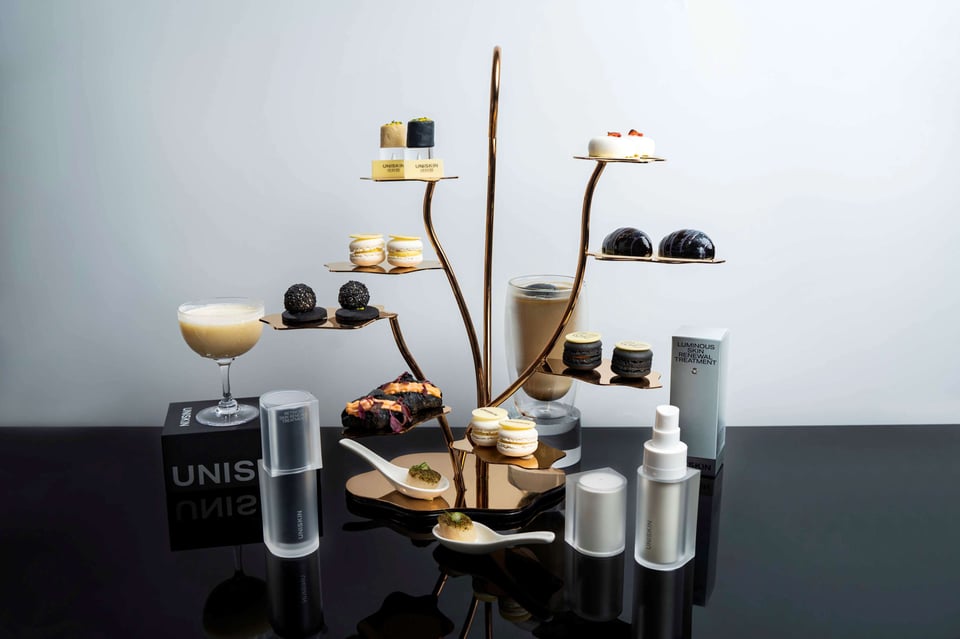Grand Kempinski Hotel Shanghai joins hands with UNISKIN, an anti-ageing brand specialising in Chinese skin, to create a joint afternoon tea of "Roving Aurorae" with its star anti-ageing single product "Black Gravity Essence" and anti-oxygen star single product "Aurora bottle essence" as the inspiration of the afternoon tea. UNISKIN, an anti-ageing brand specialising in Chinese skin, is committed to creating efficient anti-ageing products suitable for Chinese skin through research on Chinese skin characteristics and insight into an ageing trajectory and targeted accurate research and development, and is deeply loved by anti-ageing people.