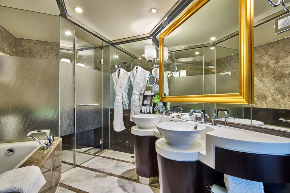 As the room’s name suggests, the Deluxe Bund View Room overlooks Shanghai’s waterfront area right in front of the Huangpu River with a skyline of North Bund. Although it is similar in size and appearance to the Premier Skyline View Room, here you will have a totally different experience.All rooms come with two vanities and you are welcome to choose from King-sized bed or Twin bed options.