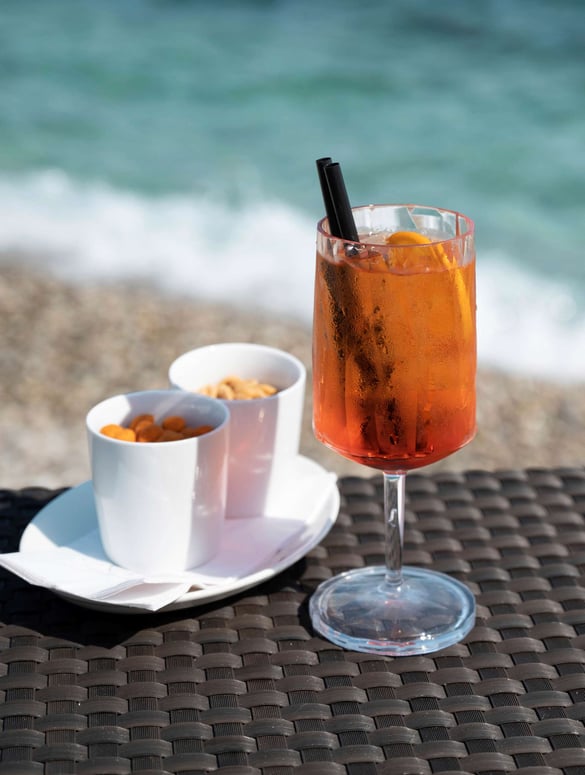 Located on the private luxury beach with a spectacular view of the great Adriatic blue, our Beach Bar is offering a healthy selection of snacks, cold beverages, cocktails, mocktails, and much more. Enjoy its beachfront seating and exquisite five-star service. Above the Beach bar, you can enjoy in the exclusive private area with comfortable cabanas, which will provide you with additional privacy and with an exceptional view - while lounging, do not miss the romantic sunsets.