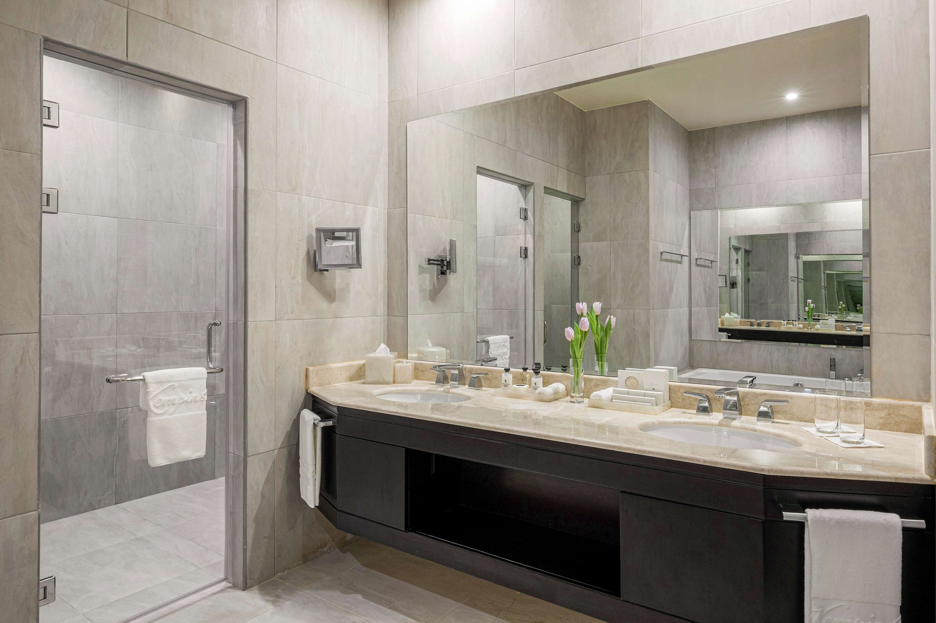 Designed in a modern, elegant style, the Royal Suite features four bedrooms, including one for a housemaid, each equipped with its own bathroom. A fully equipped kitchen, a dining room, two lounges and more complement this luxury suite for a more relaxing and fulfilling stay. Guests can take advantage of exclusive personalised services with secretarial and concierge assistance.