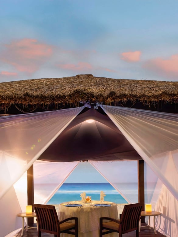 Casitas is an exclusive dining experience that combines breathtaking views of the Caribbean Sea with sumptuous cuisine and a relaxed atmosphere. Located right on the beach, this exceptional restaurant at Kempinski Hotel Cancún offers the perfect setting for a romantic dinner or a special occasion with family and friends.