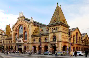The Great Market Hall is more than just paprika stalls. Its vibrant atmosphere, colourful tiled roof and soaring ironwork offer spectacular shots, best captured from the upper gallery for a full top-down perspective.