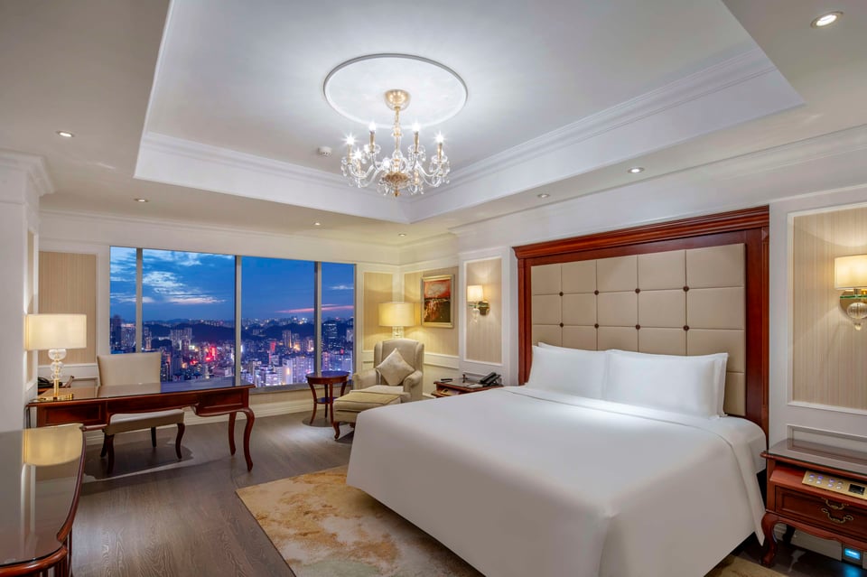 As an upscale luxury hotel in Guiyang, Kempinski Hotel Guiyang boasts spacious king or twin beds, providing guests with bespoke European comfort. The rooms feature contemporary European decor, a dedicated working desk, a flat-screen TV, complimentary Wi-Fi and separate bath and shower facilities.