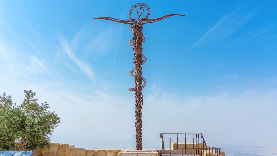 Imagine standing at the summit of this majestic mountain, just like Prophet Moses did! From there, you'll be treated to an awe-inspiring sight: a sweeping panorama that stretches across the Jordan River Valley, the Dead Sea, Jericho, and Jerusalem - all part of the sacred Holy Land.